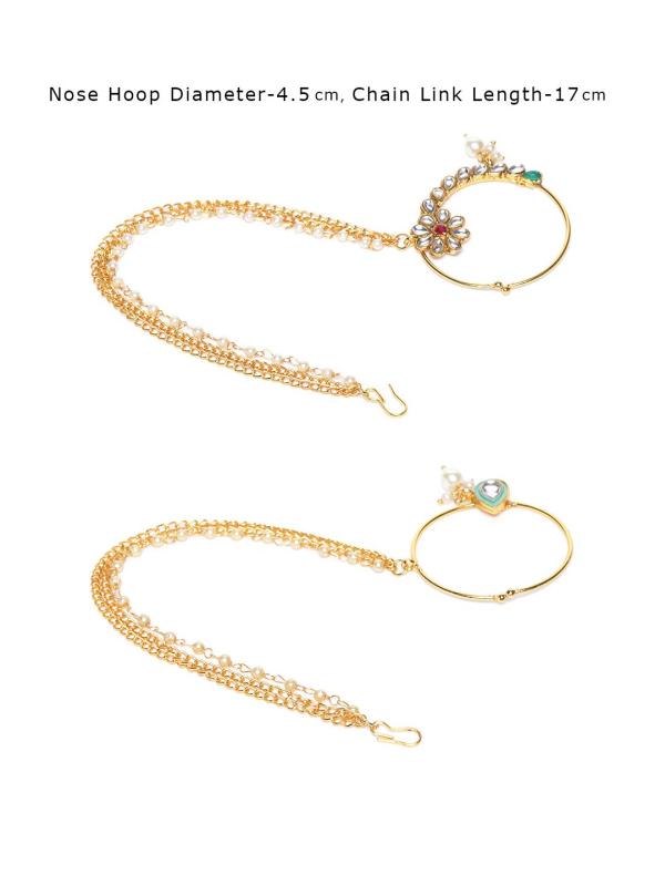 Enamelling & Kundan Bridal Hoop Nose Ring-ZPFK9588