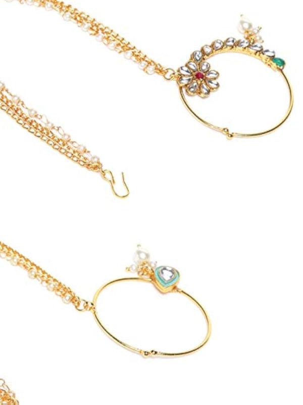 Elegant bridal hoop nose ring with enamelling & kundan stones. Perfect for weddings and special occasions.