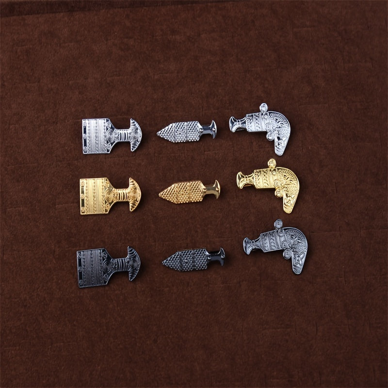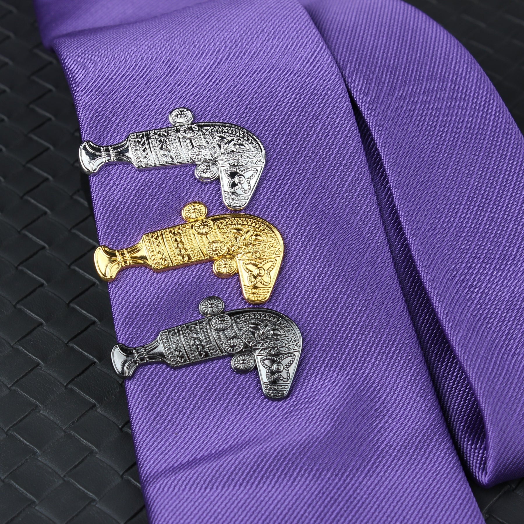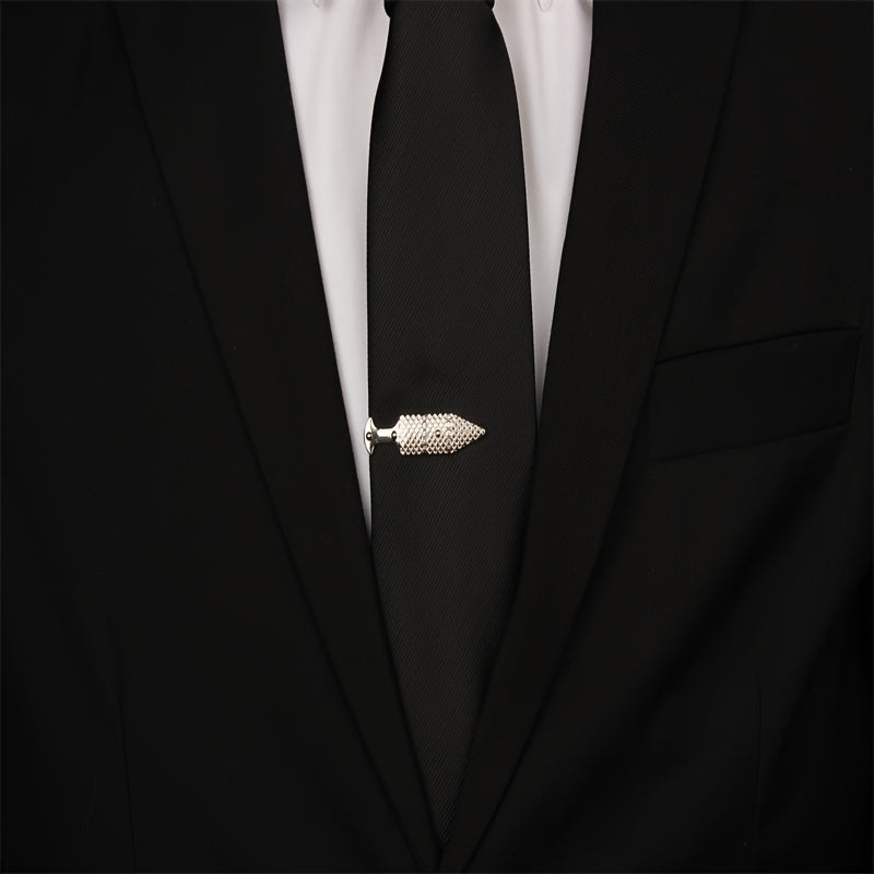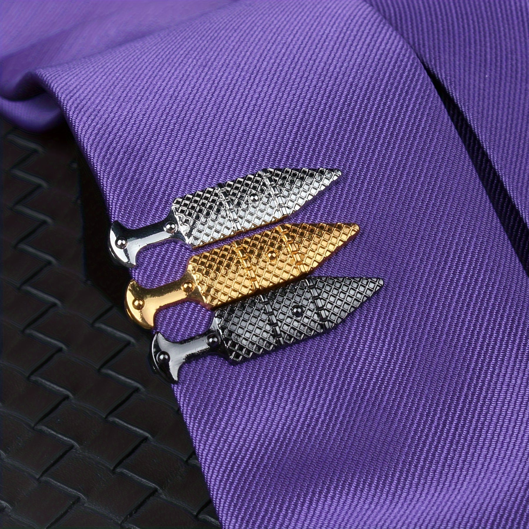 Enhance your business suit with this funky style tie clip set featuring unique geometric pattern details. The set includes novelty fish and pistol shapes, adding a touch of personality to your outfits.
