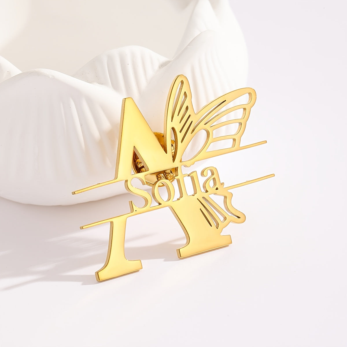 Add a touch of uniqueness to your outfits with this butterfly brooch featuring custom engraving on 304 stainless steel. Its hollow out wings design adds elegance and is an ideal party accessory. Makes a perfect birthday gift for women.