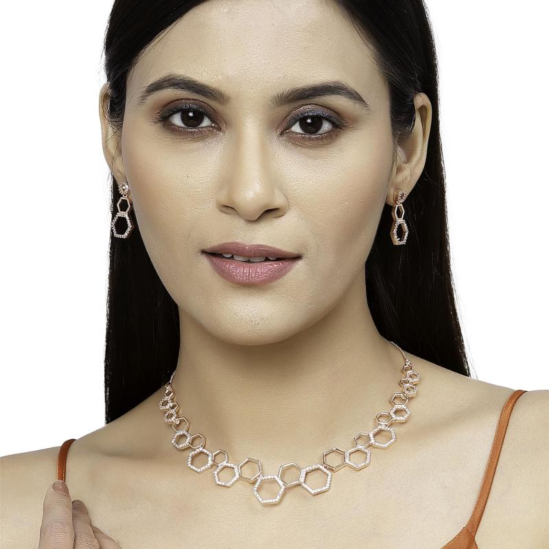 • Includes a sparkling diamond necklace and matching earrings