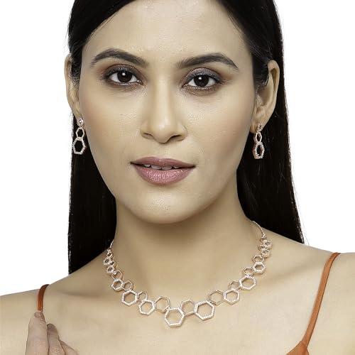 Rhodium-Plated Set: Diamond Necklace & Earrings