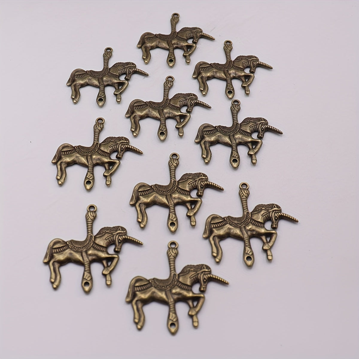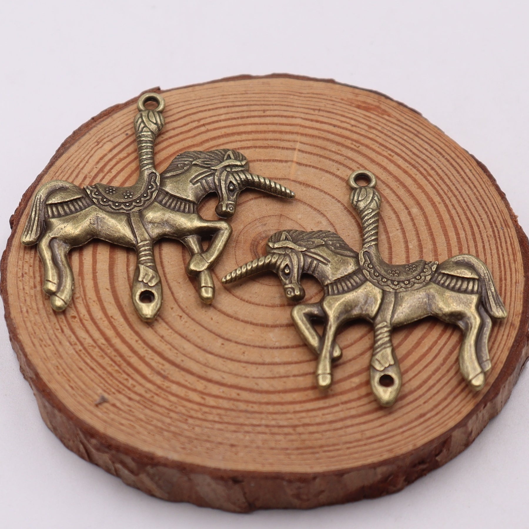 This set includes 10pcs of alloy antique bronze double hanging unicorn pendants, perfect for making unique jewelry pieces. Each pendant measures 4.1x1.69 inches.