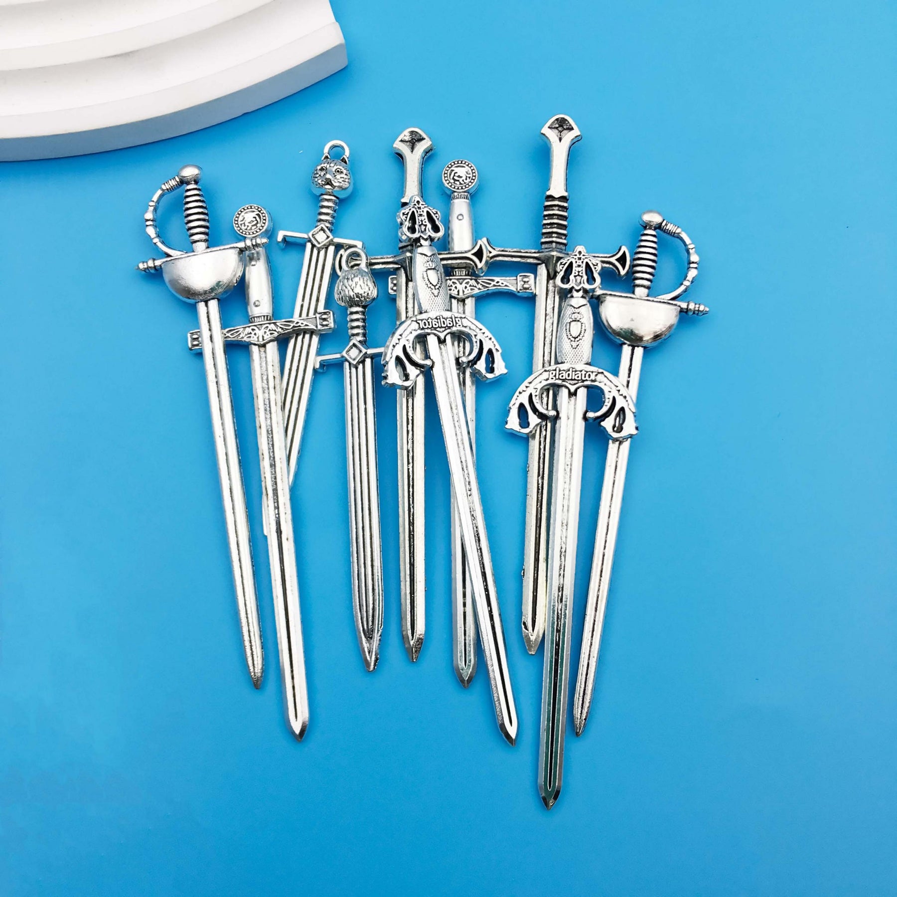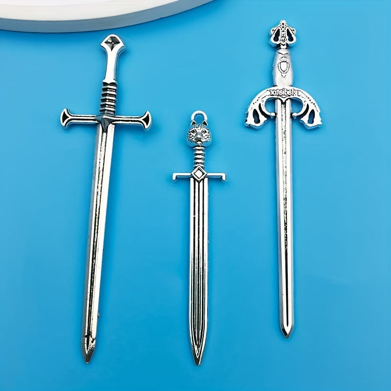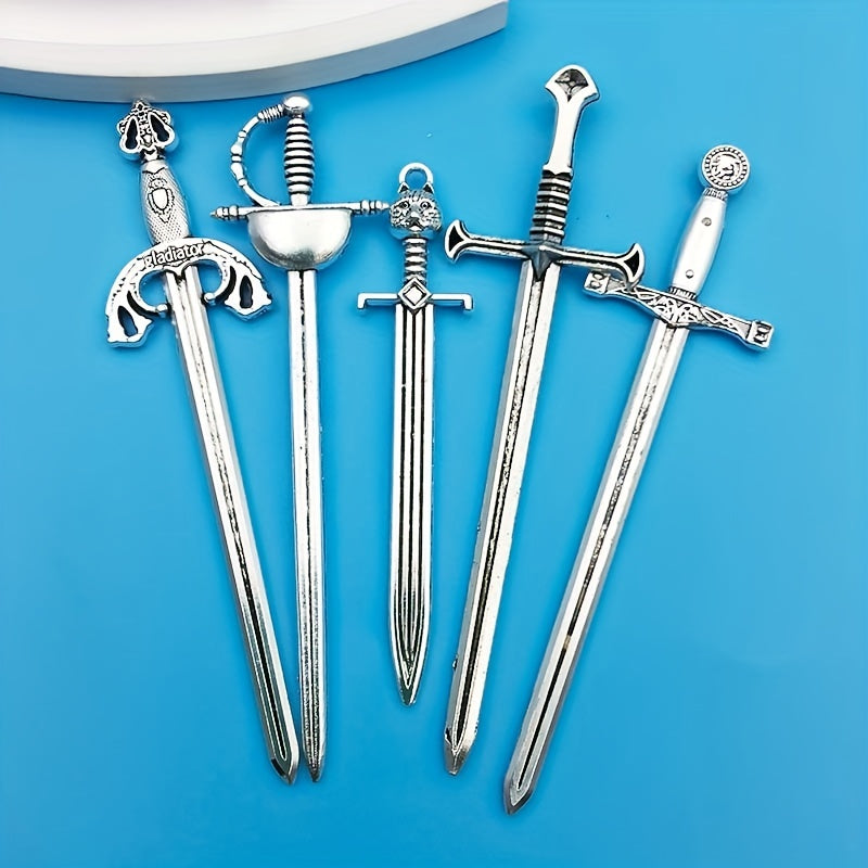This set includes 10 antique silver sword pendants made from zinc alloy. Perfect for creating necklaces, bracelets, earrings, and more.