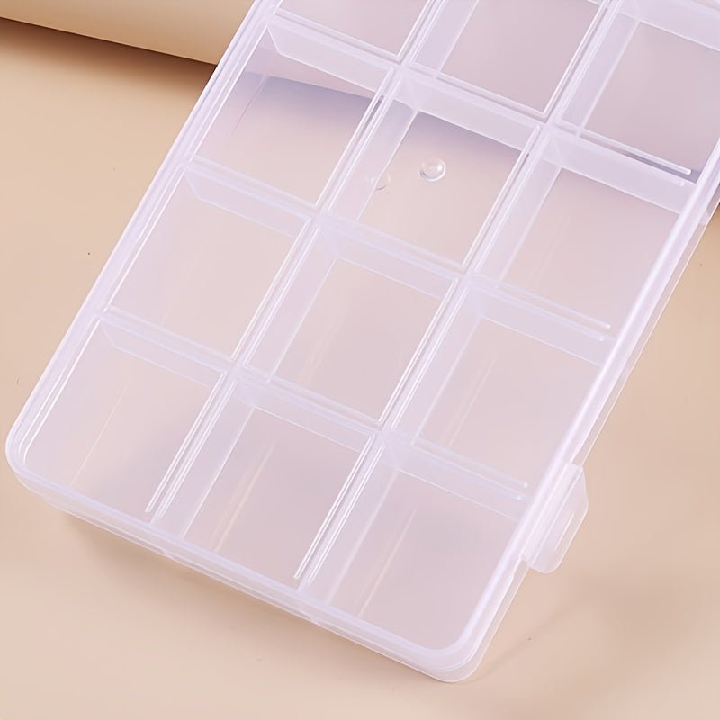 Organize your jewelry, stationery, and small items with this large capacity storage box. The plastic rectangular design offers 15 compartments for easy organization and access.