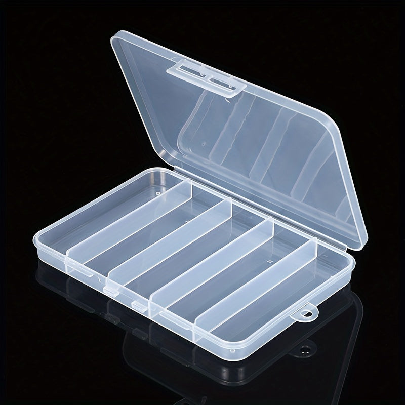 Organize your DIY accessories and beads with this transparent plastic storage box. Made of durable PP material with 5 grid compartments to keep items separated and easily accessible.