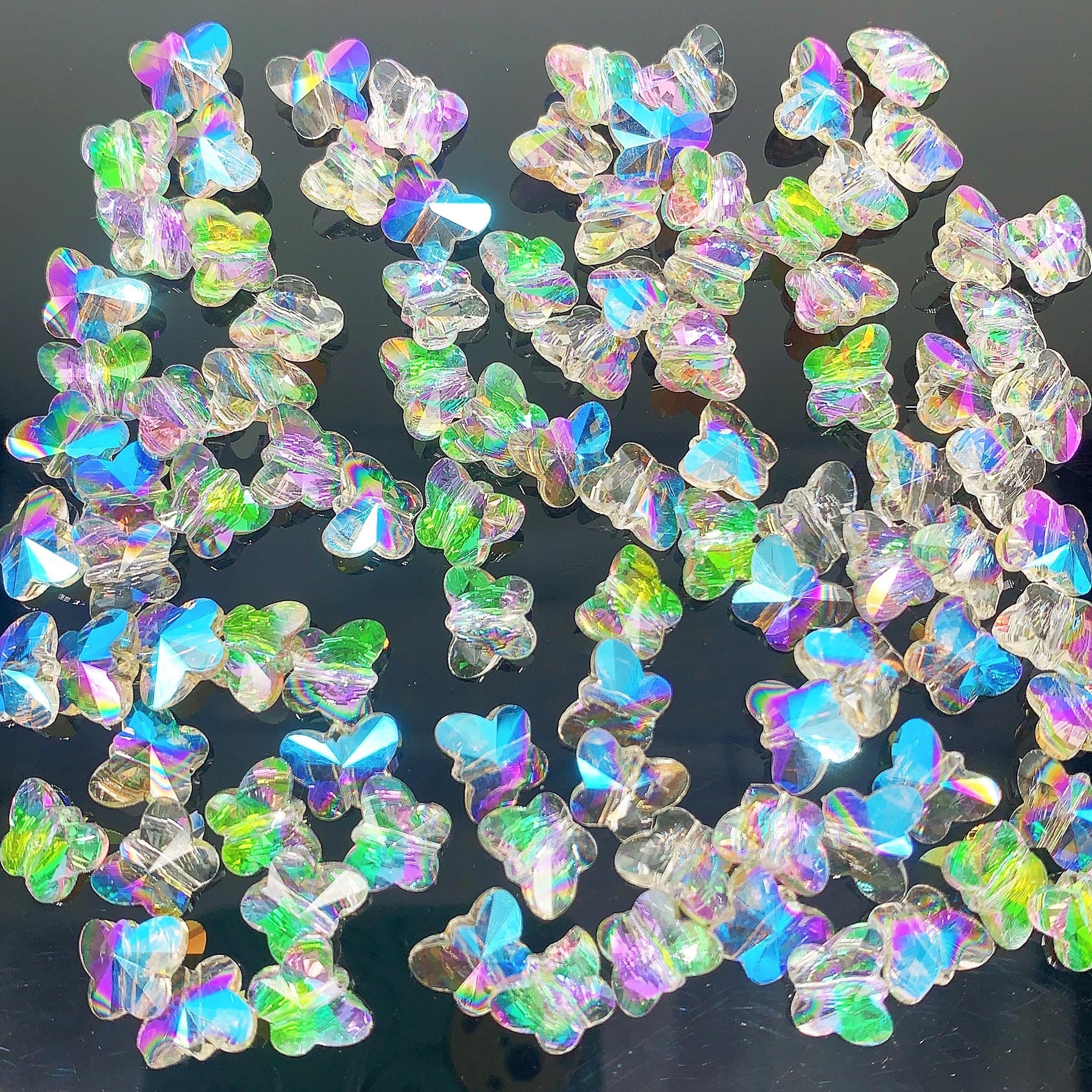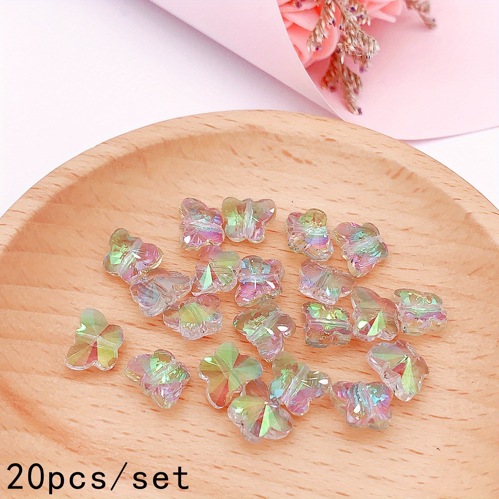 Create stunning bracelets with these 20pcs multifaceted butterfly crystal glass beads in AB finish. Perfect for jewelry making projects.