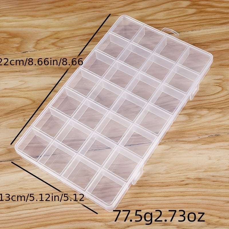 This 28-grid transparent storage box is perfect for organizing small parts, beads, and other items. Made of durable plastic, it ensures easy visibility and access to your stored items.