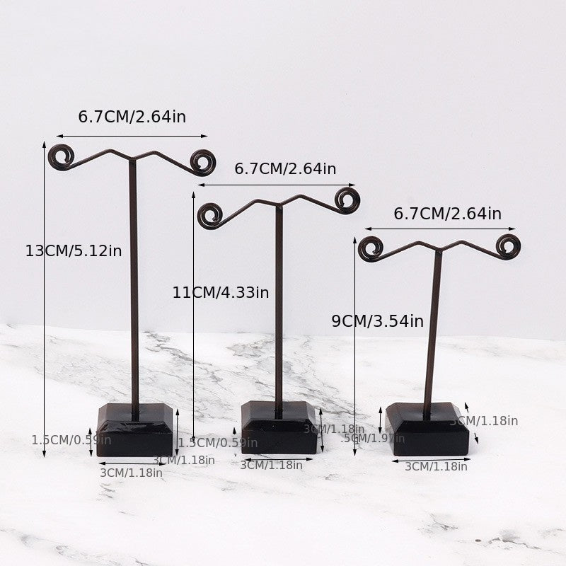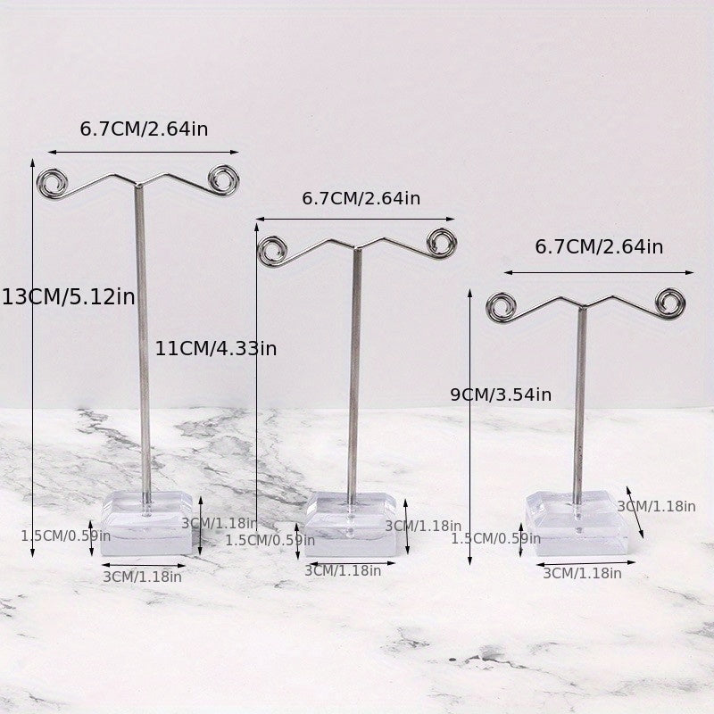 Keep your earrings, necklaces, and pendants organized with this set of 3 mini metal holders. Each holder features an acrylic base for a modern look.