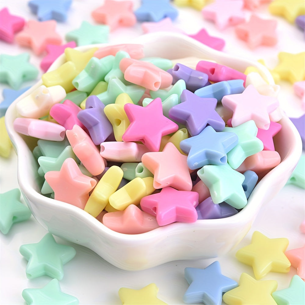 This set includes 50 mixed color acrylic five-pointed star spacer beads perfect for jewelry making projects.
