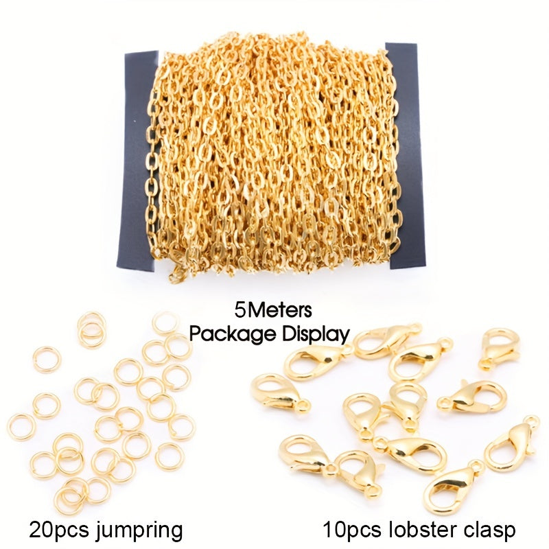 This 5m plated alloy chain with lobster clasp is perfect for DIY accessory making projects. It has a 2mm diameter and can be used for creating decorative ornaments or pendants.