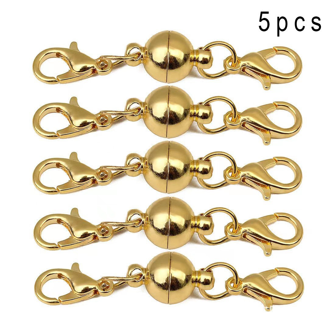 These spherical magnet buckles are perfect for creating your own bracelets and necklaces. The pack contains 5 pieces in golden and silver colors.