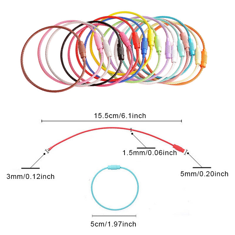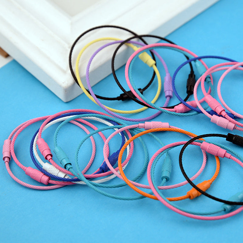 Get creative with these 5 colorful spray painted wire ropes with button rotatable screw, perfect for DIY key rings or lanyards. Ideal as a holiday gift for friends and family.