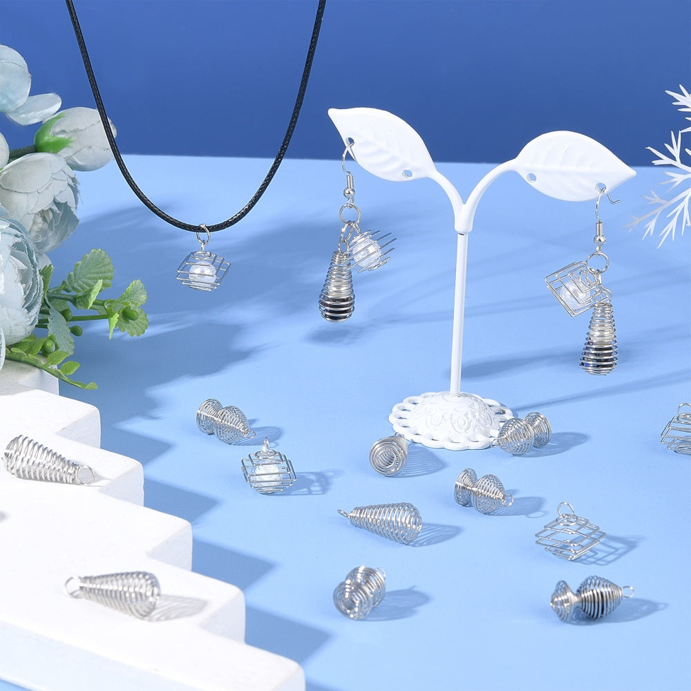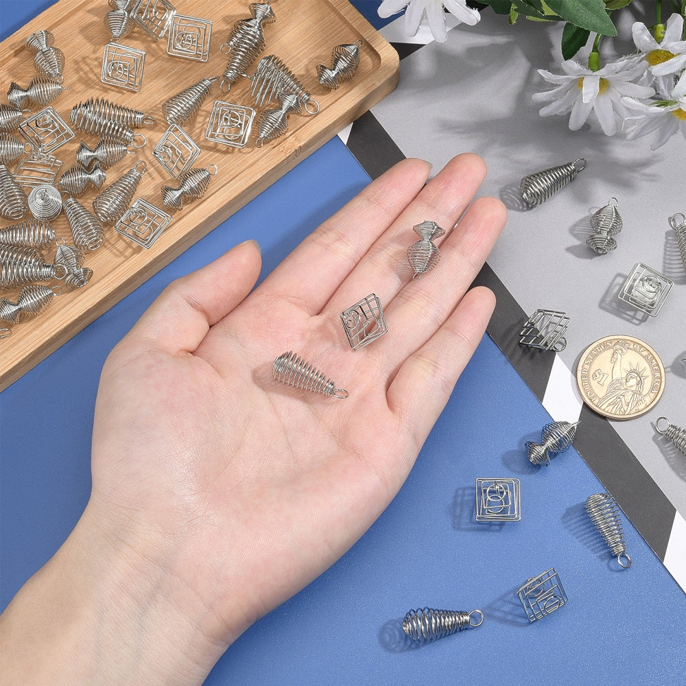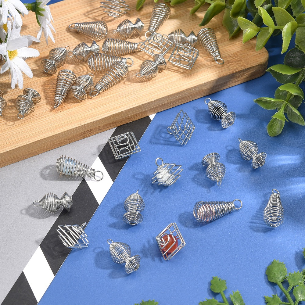 Enhance your jewelry-making with this set of teardrop, square, and round alloy stone crystal necklace holder charms. Ideal for earrings, bracelets, and necklaces.