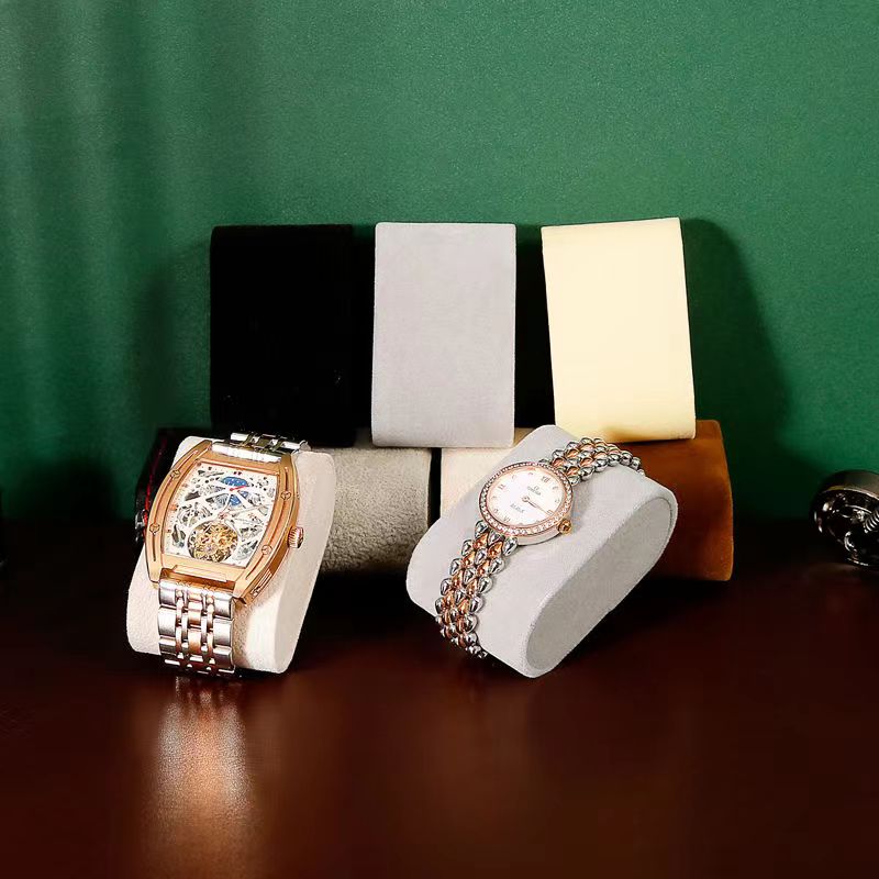 This small rectangular pillow is made of high elastic sponge covered with beige pearl velvet. Perfect for displaying watches and jewelry.