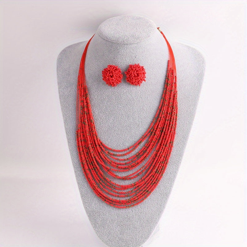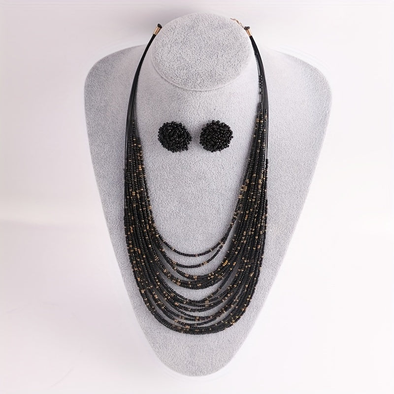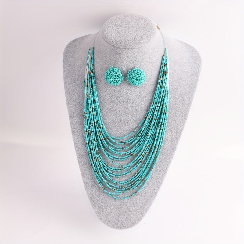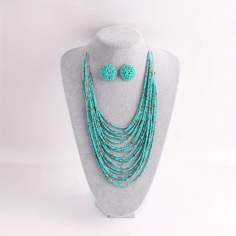 Enhance your boho style with this charming rice bead necklace set. Perfect for adding a touch of bohemian elegance to your look.
