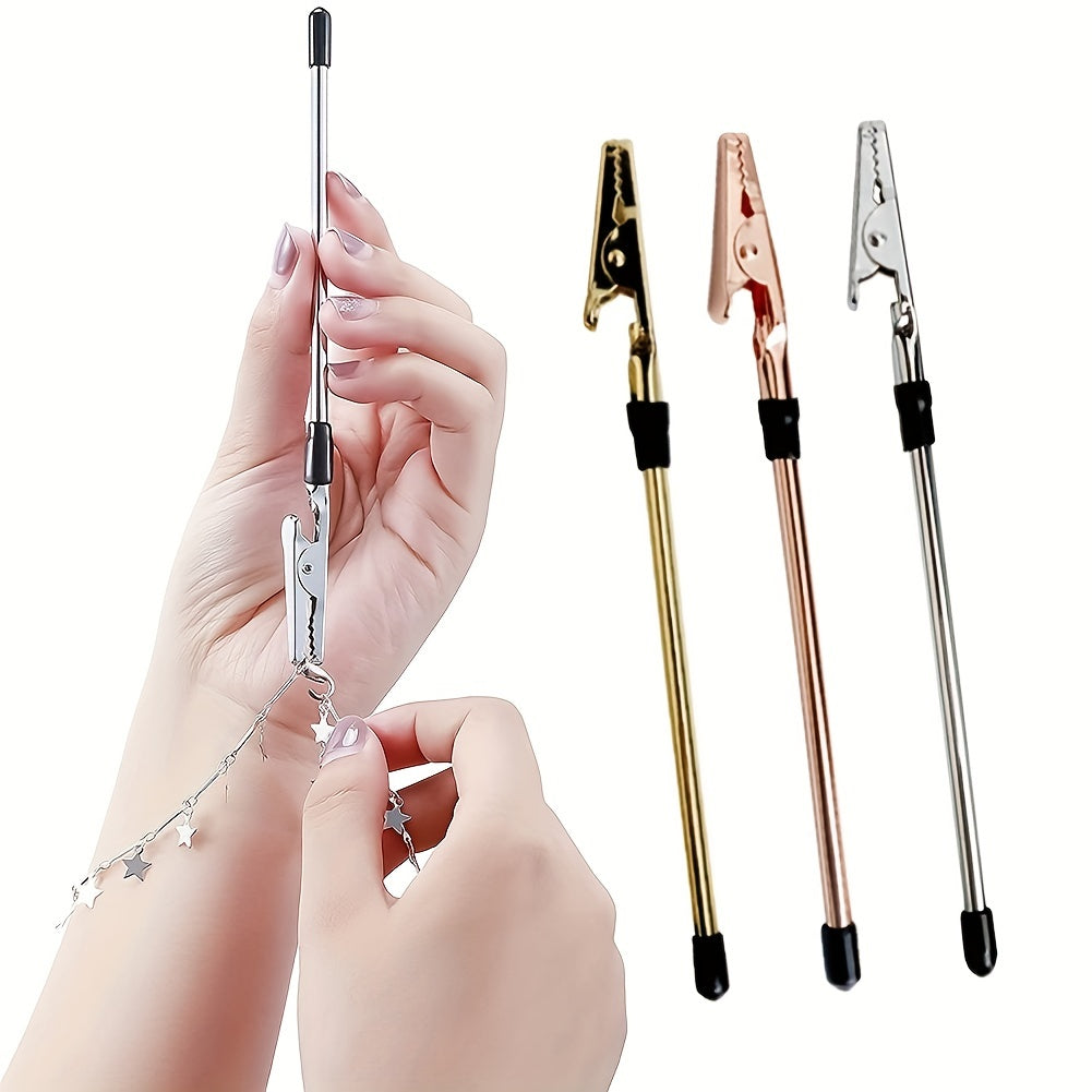 This bracelet helper is a handy tool to assist in fastening bracelets, watches, neckties, zippers, and other crafts. It makes putting on and taking off accessories easier.