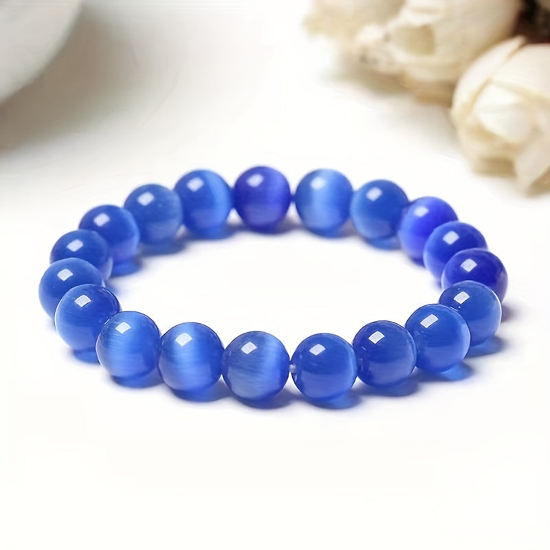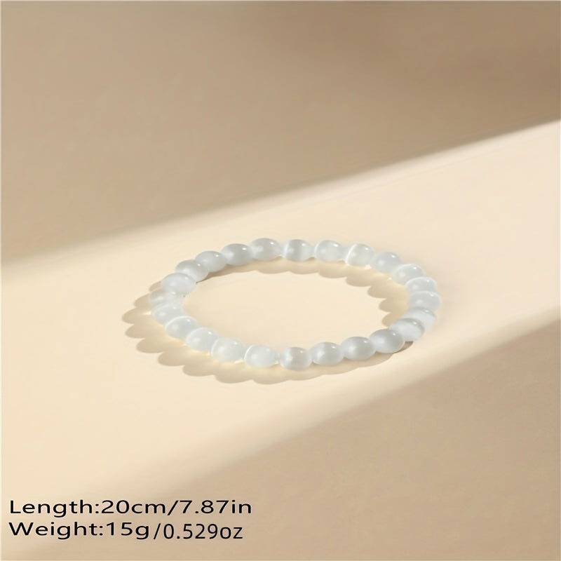 Add a unique touch to your outfit with this Cat Eye Stone Bracelet. The 8mm beads in pink, yellow, and green create a stylish and trendy look that will complement any ensemble. Perfect for girls who love to express their individuality.