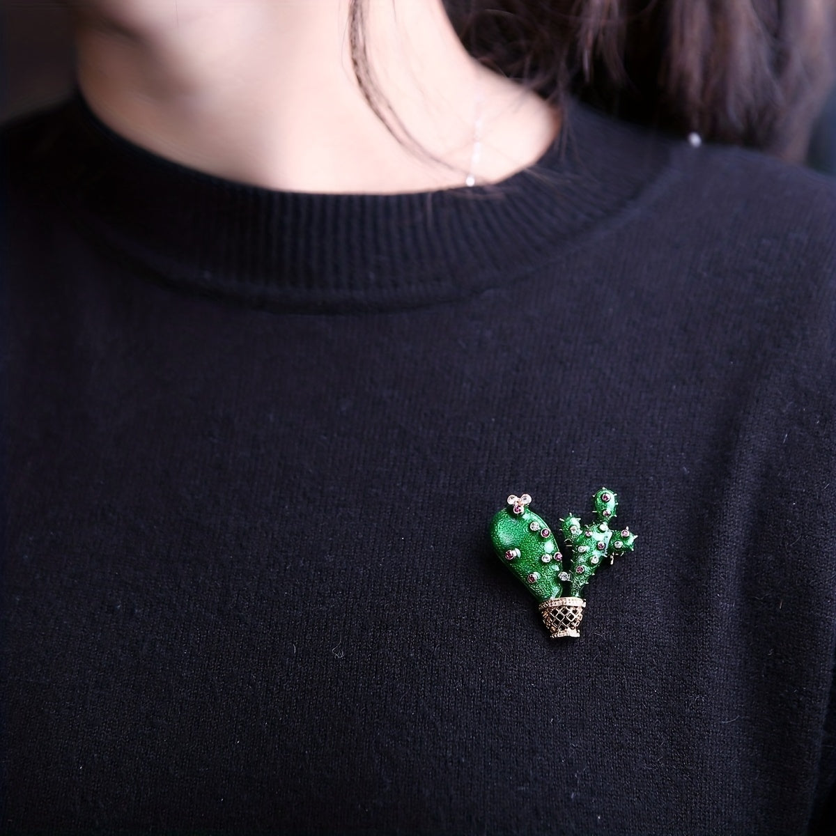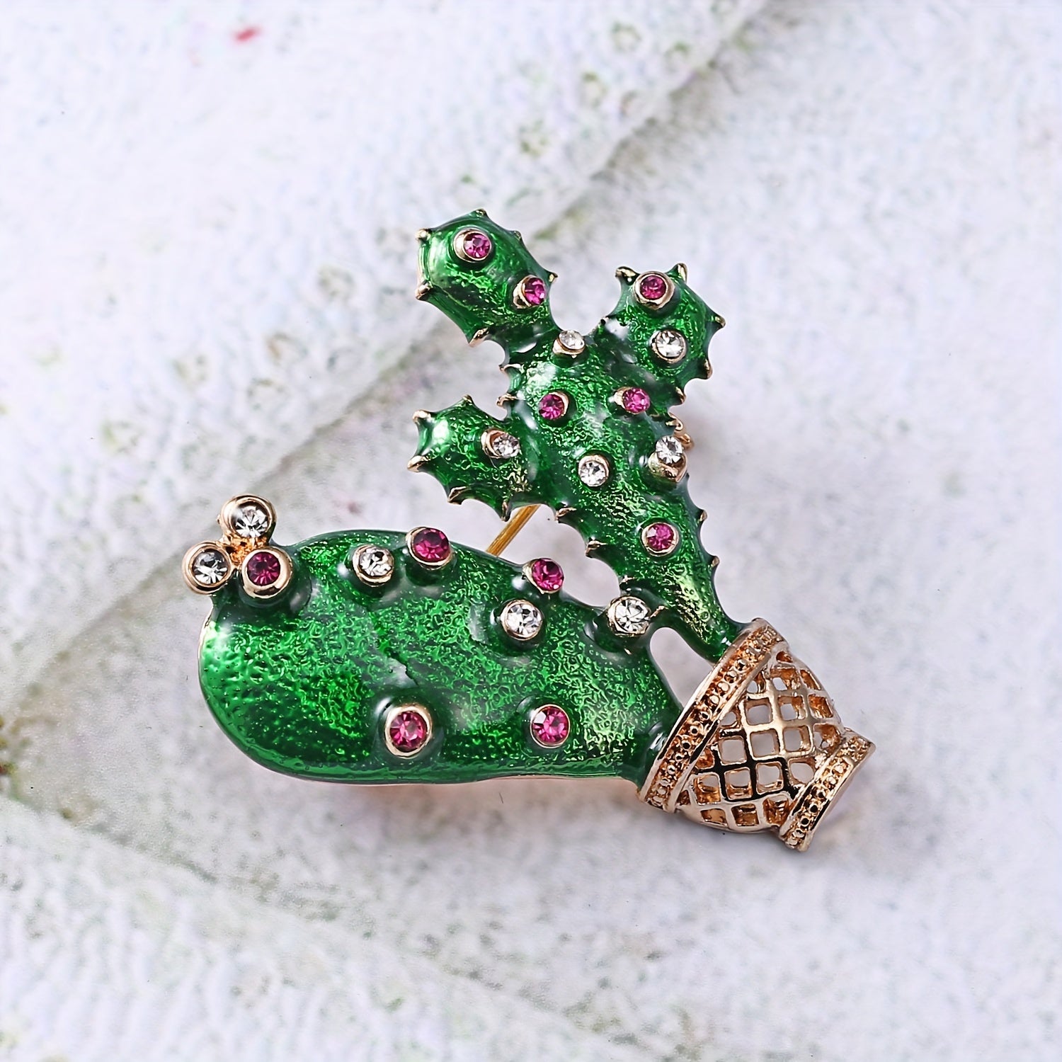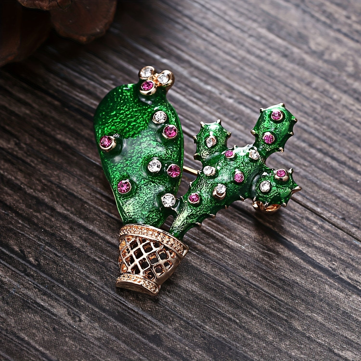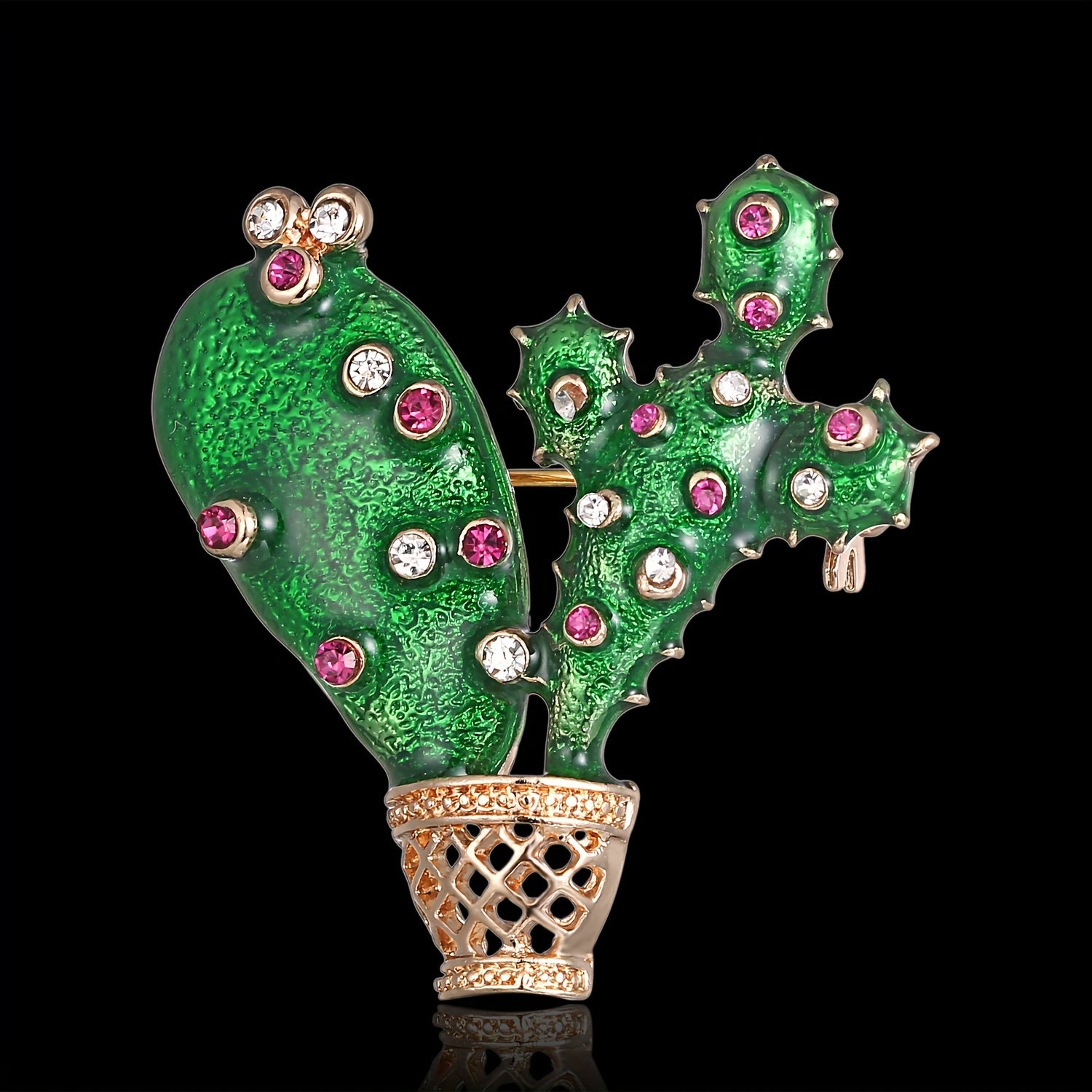 Add a pop of color to your outfit with this stylish cactus-shaped oil brooch pin featuring inlaid colorful rhinestones. Perfect for adding a touch of charm to dresses and other garments.