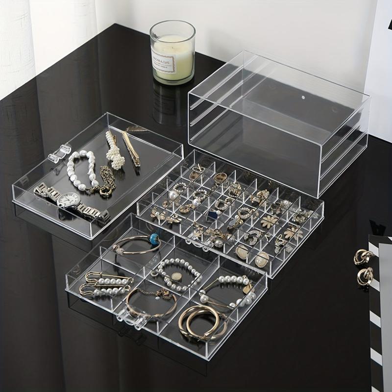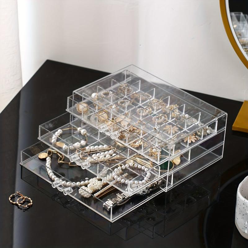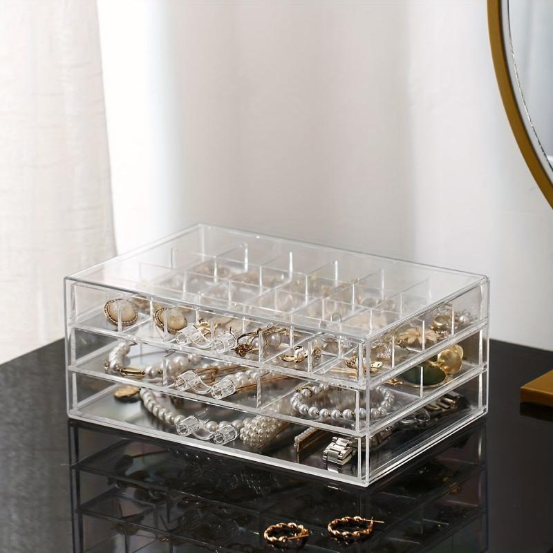 Keep your jewelry organized and easily accessible with this large capacity three-layer transparent storage box. Perfect for storing rings, earrings, necklaces, bracelets, and more.