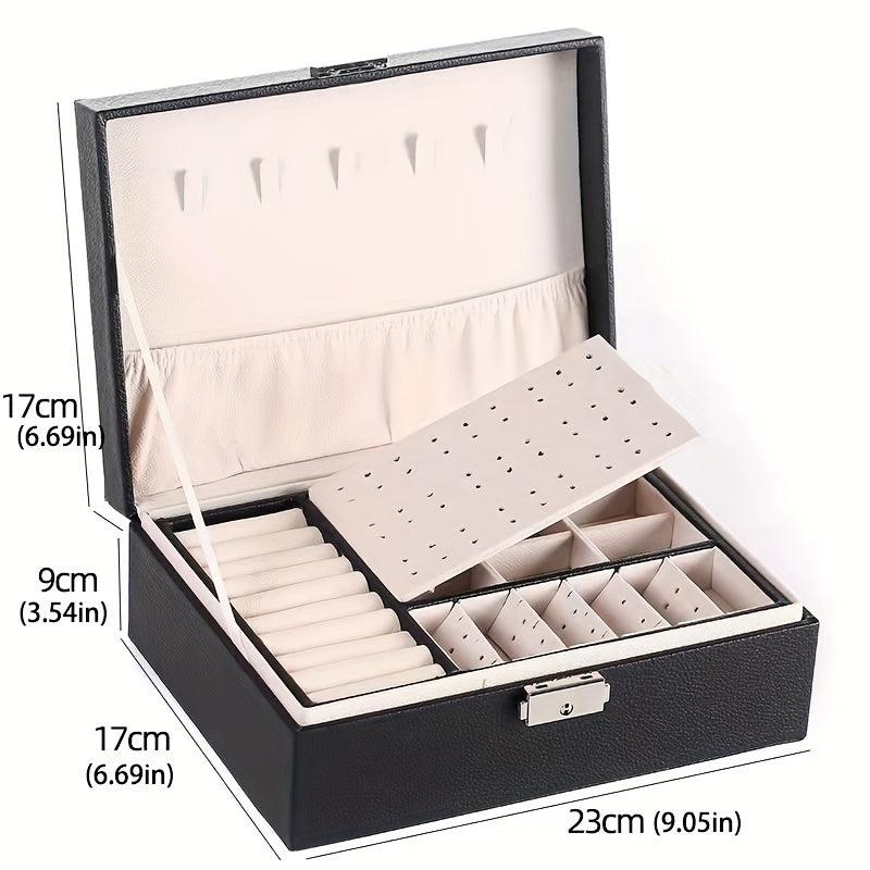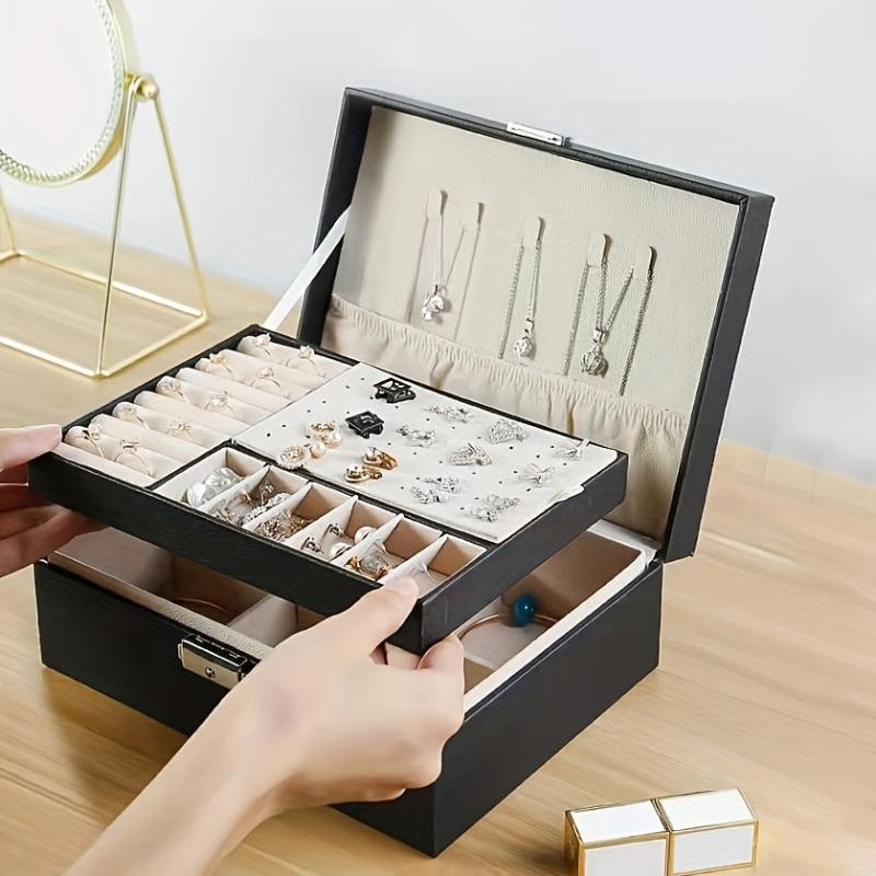 Organize your stud earrings, rings, and necklaces in this multifunctional jewelry organizer. Features key lock for added security.