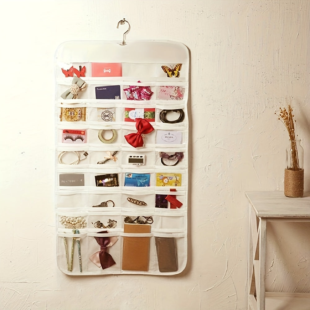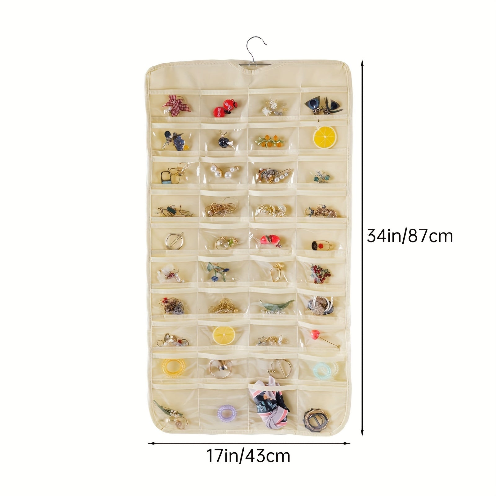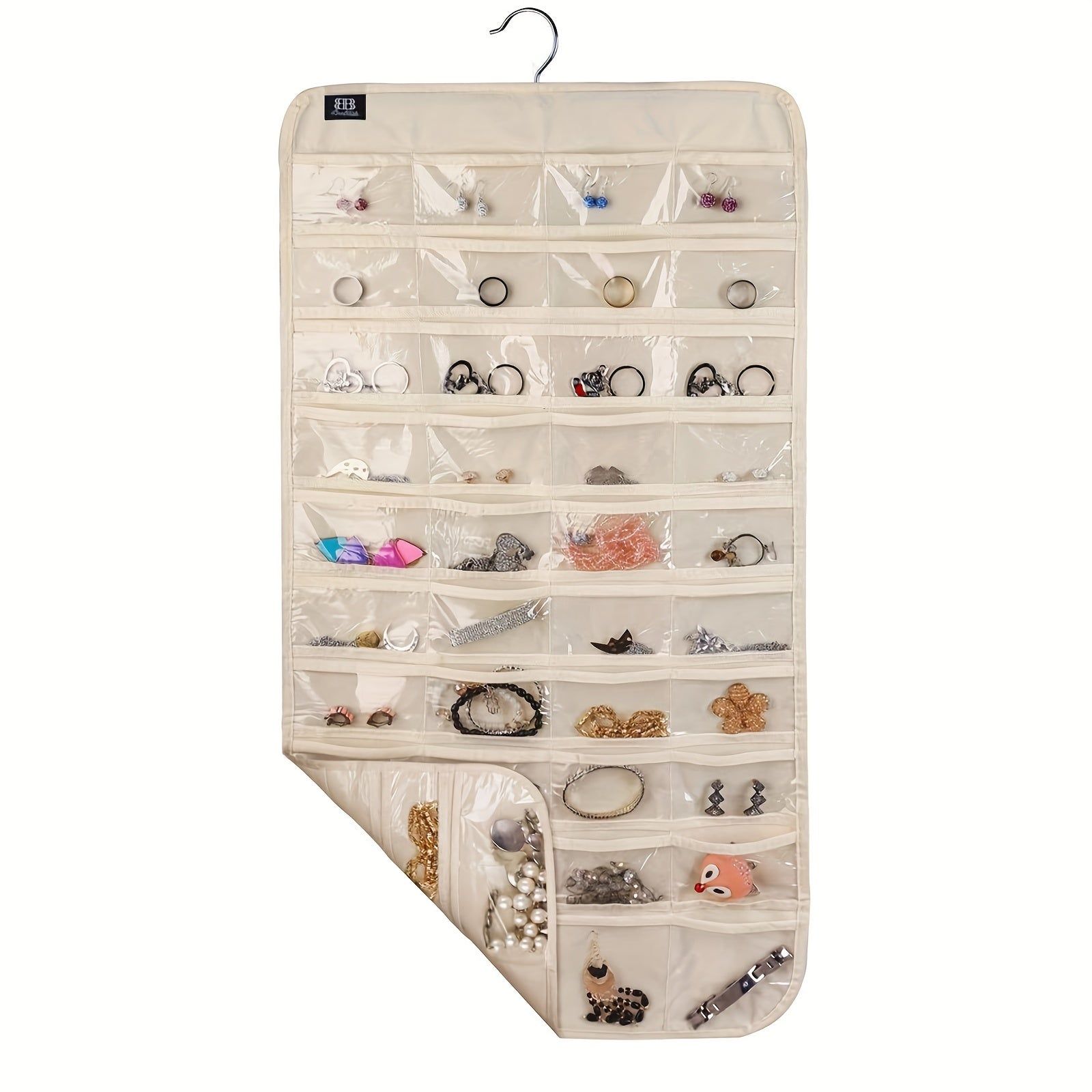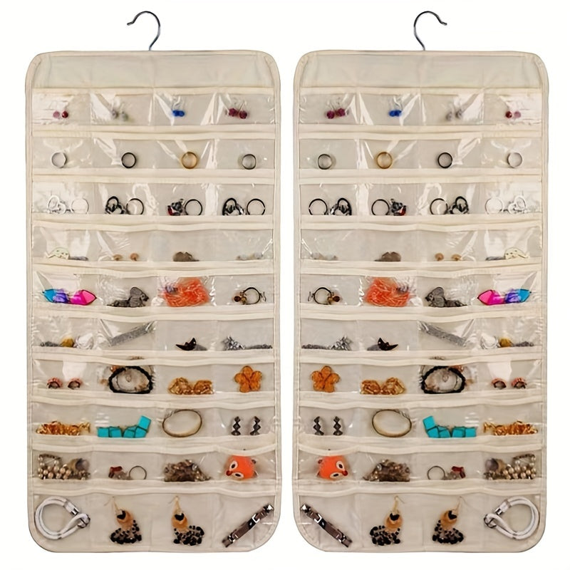 Keep your jewelry organized and dust-free with this double-sided hanging jewelry storage box. The 80 pockets provide ample space for storing necklaces, earrings, bracelets, and more.