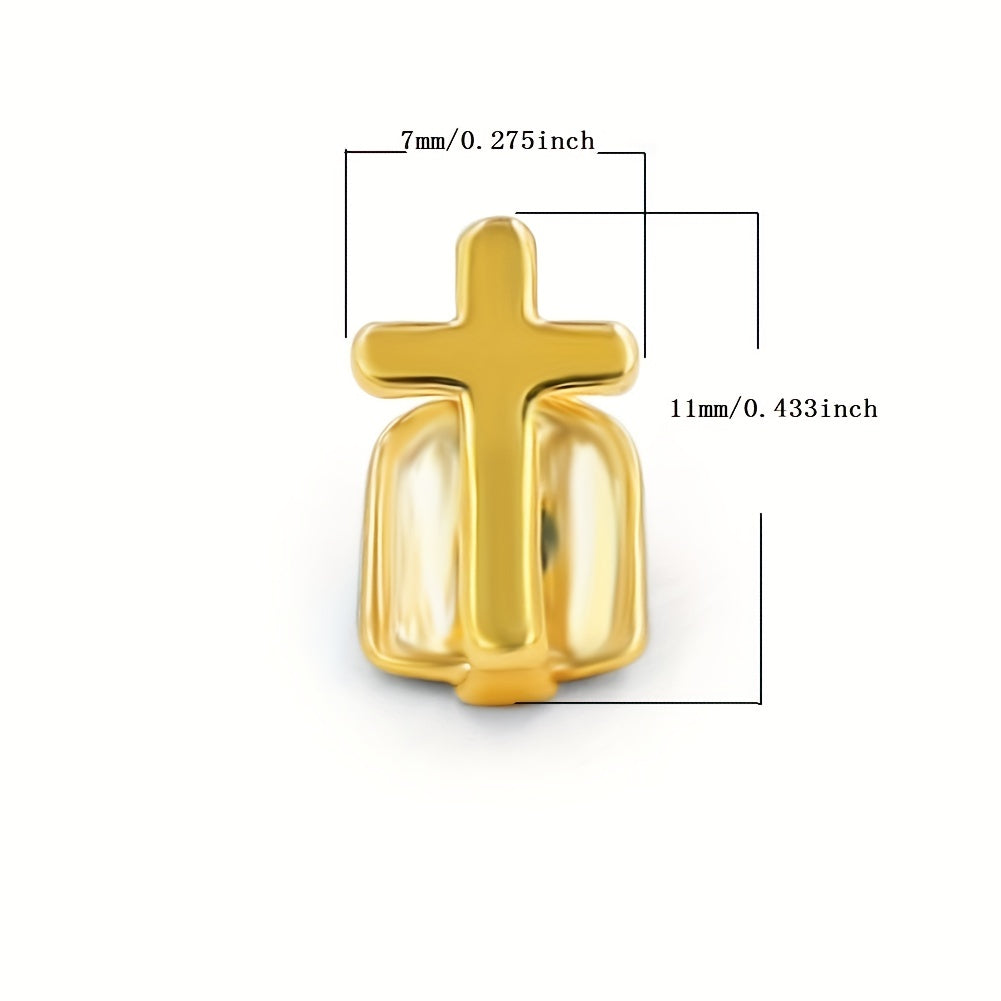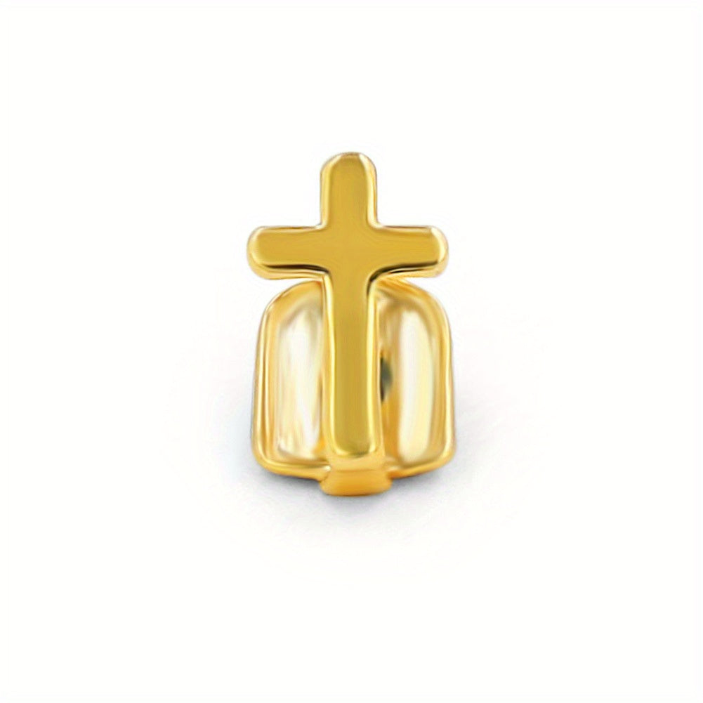 Stand out with these single cross golden braces teeth grills that radiate a rapper punk style. Perfect for hip hop enthusiasts and cosplay events.
