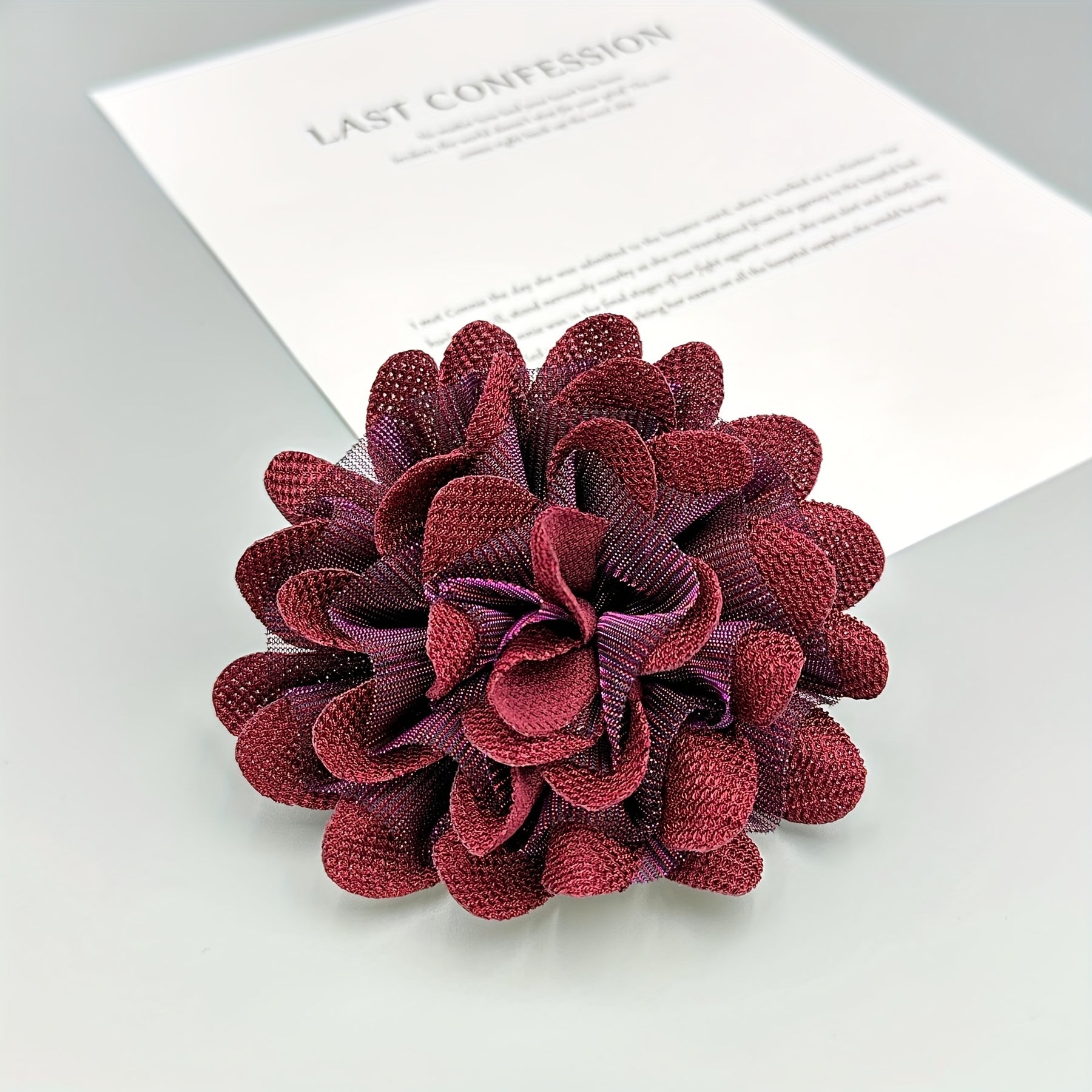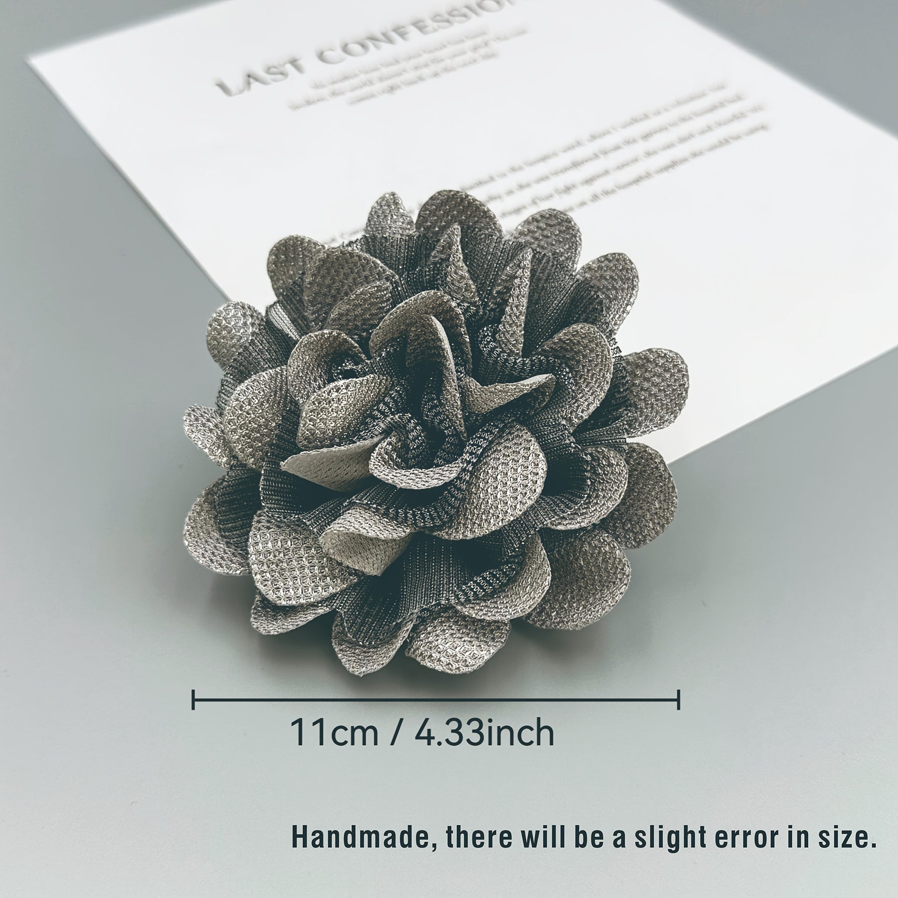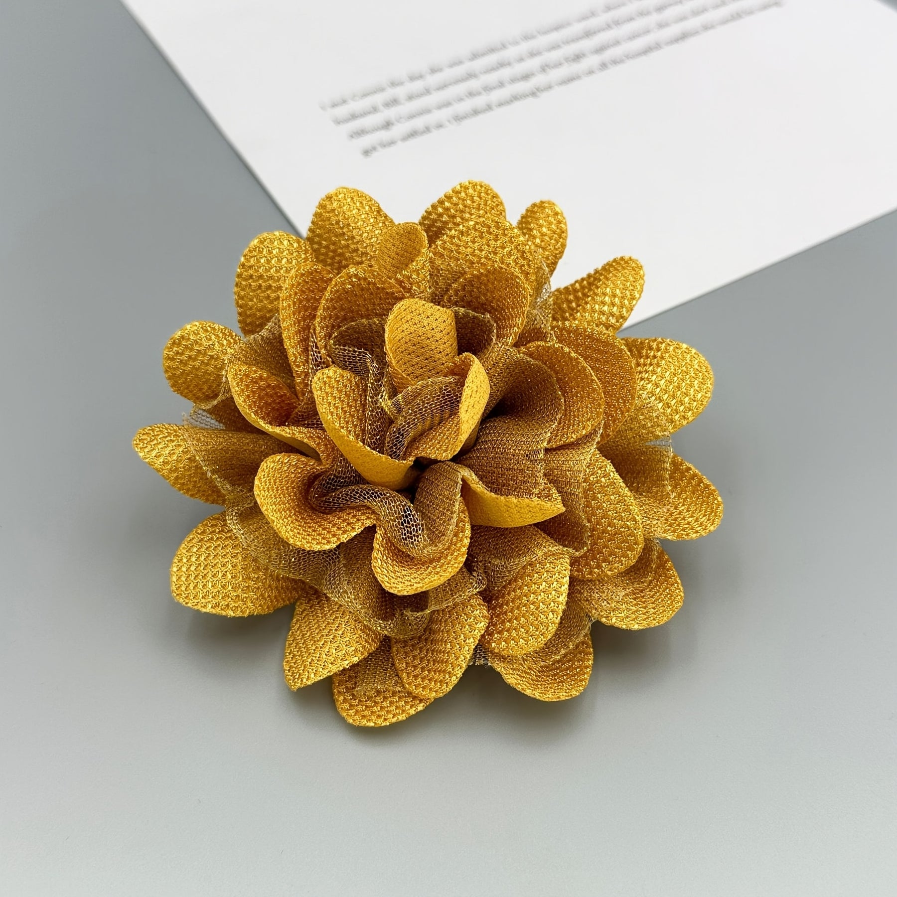 Elevate your style with this fashionable handcrafted fabric flower brooch pin. Made from polyester fiber, it adds a decorative touch to hats, apparel, and more without requiring any power.