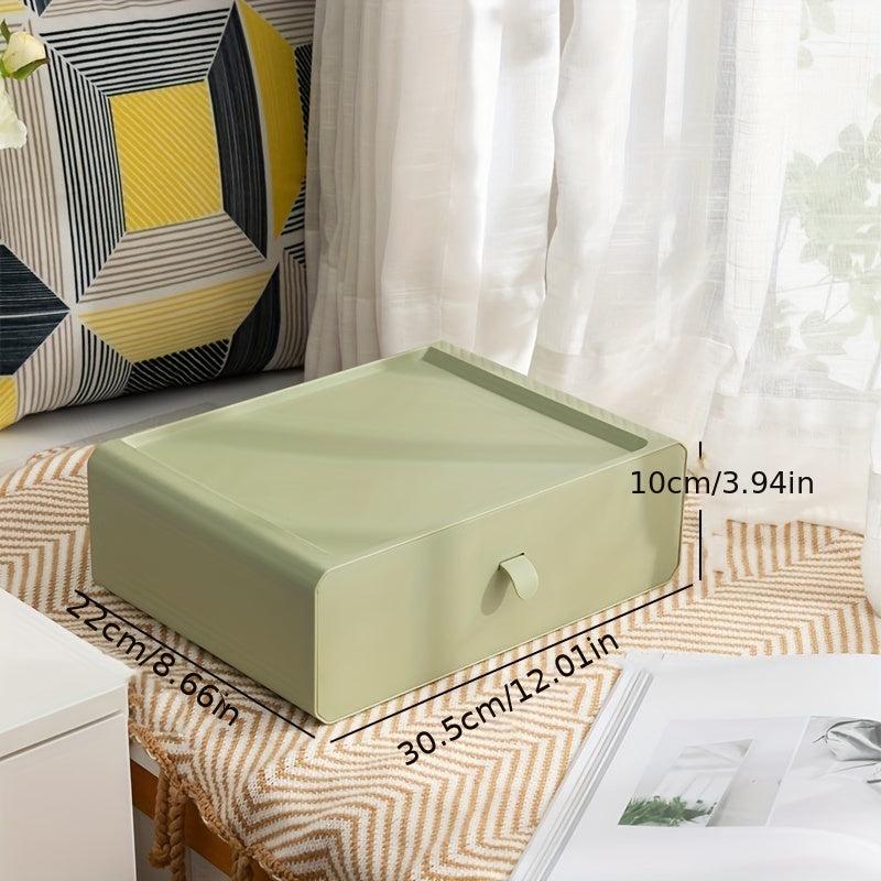 This plastic storage box with a single drawer is perfect for organizing your jewelry, watches, earrings, necklaces, and clothing. The green color adds a pop of color to your storage solution.