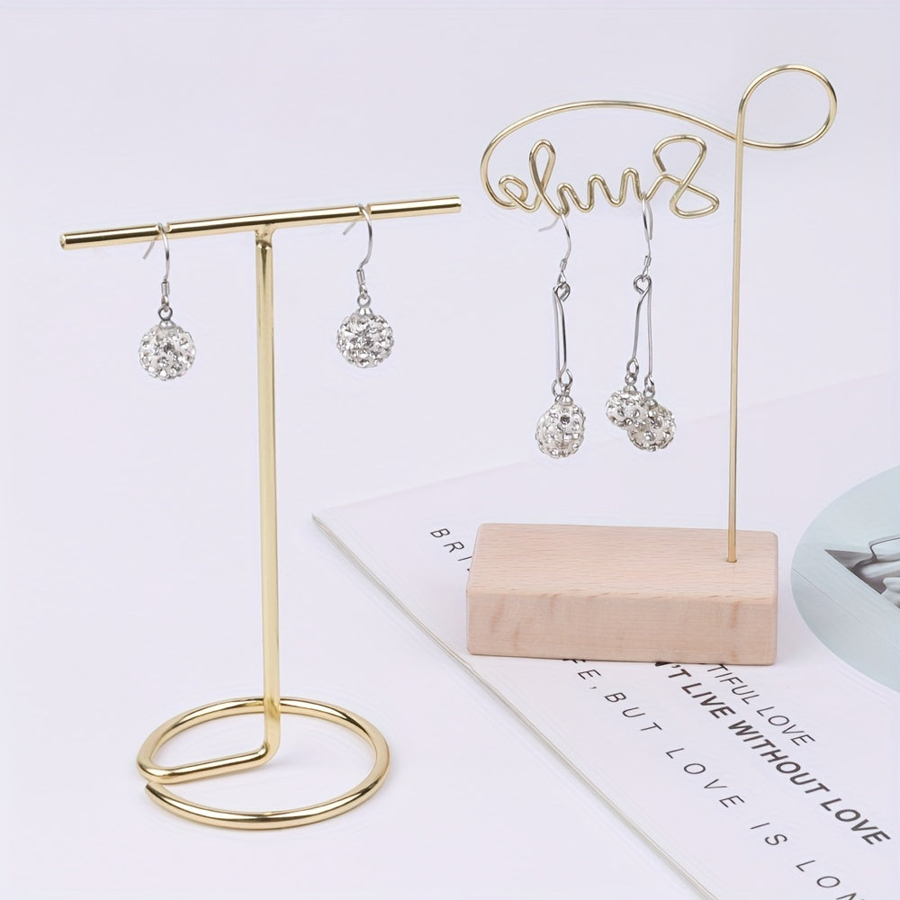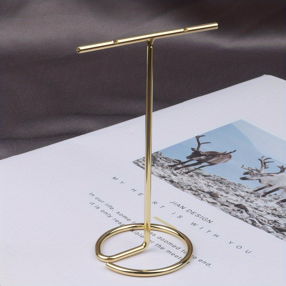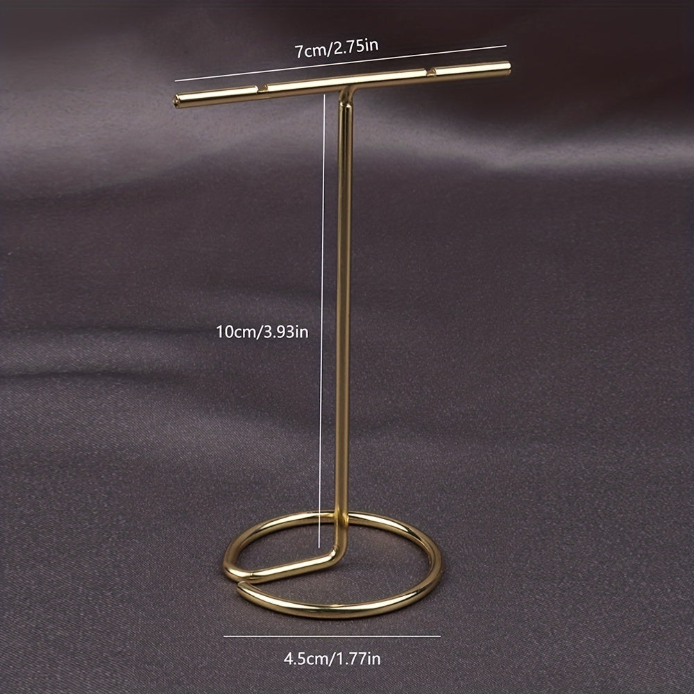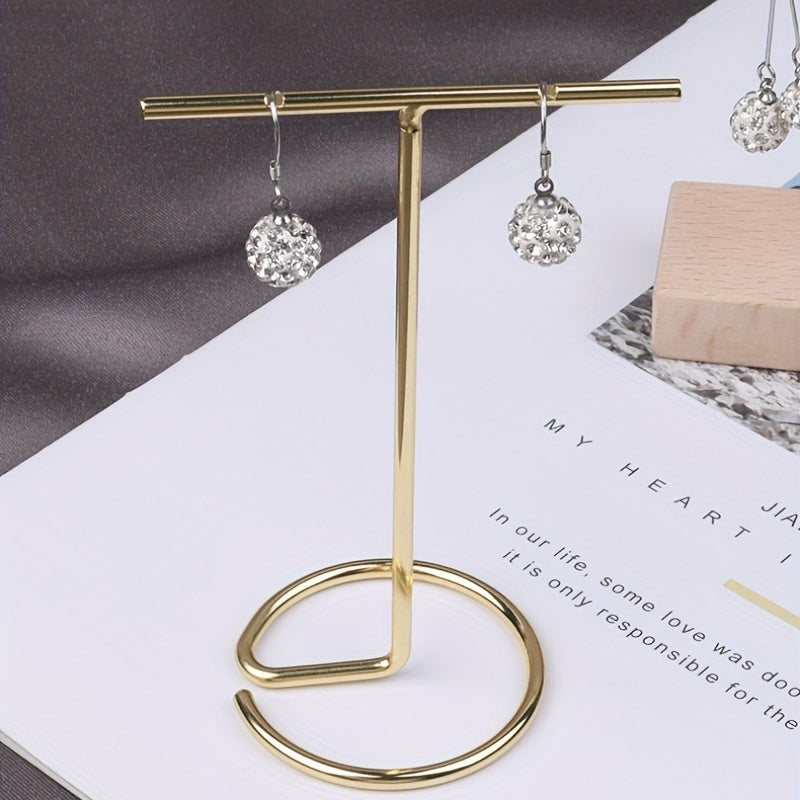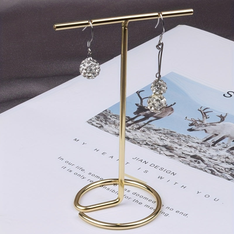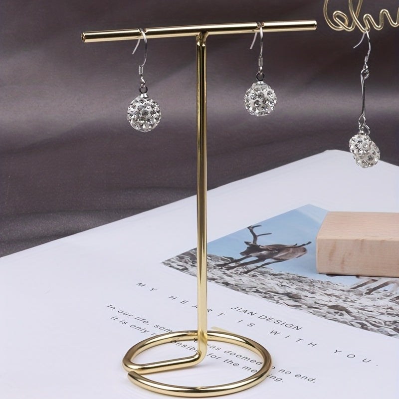 This elegant T-shaped jewelry stand is perfect for displaying rings, earrings, and other small jewelry items. It is made of durable metal and has a sleek design that will complement any decor.