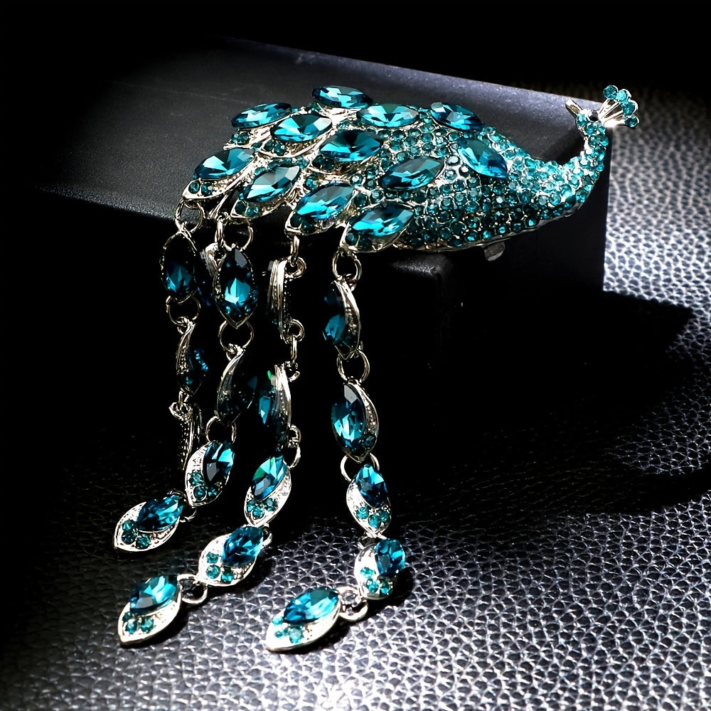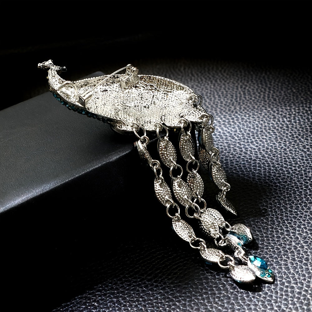 This elegant peacock brooch with tassel detail adds a charming touch to your outfits.