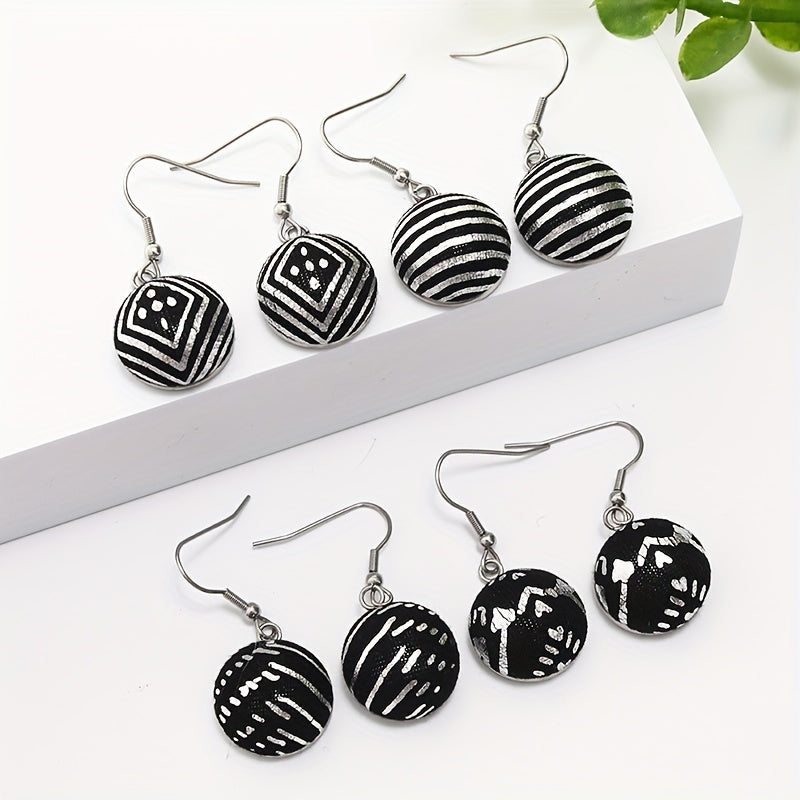 Elegant and delicate stainless steel earrings featuring personalized stripe patterns. Comes with 9 sets for gifting and decorating jewelry accessories.