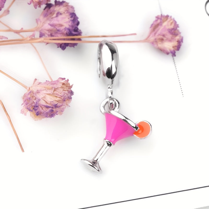 Add a touch of style with this adorable pink cocktail cup charm. Compatible with Pandora bracelets or necklaces.