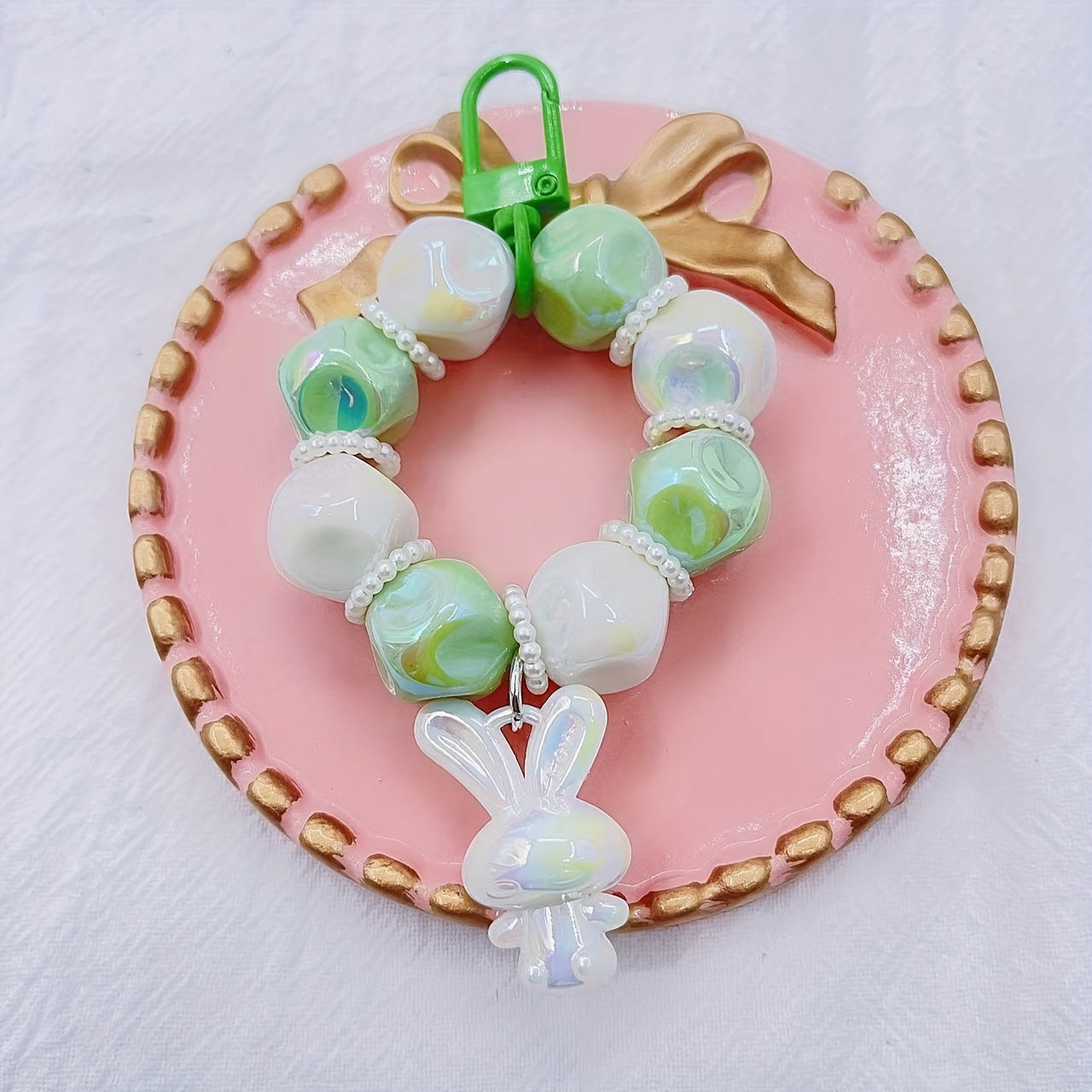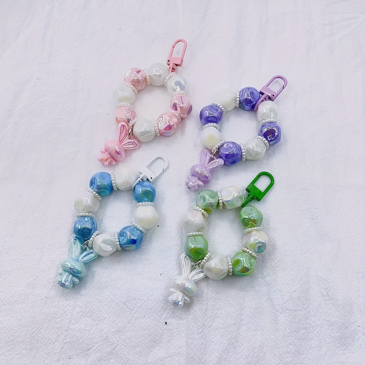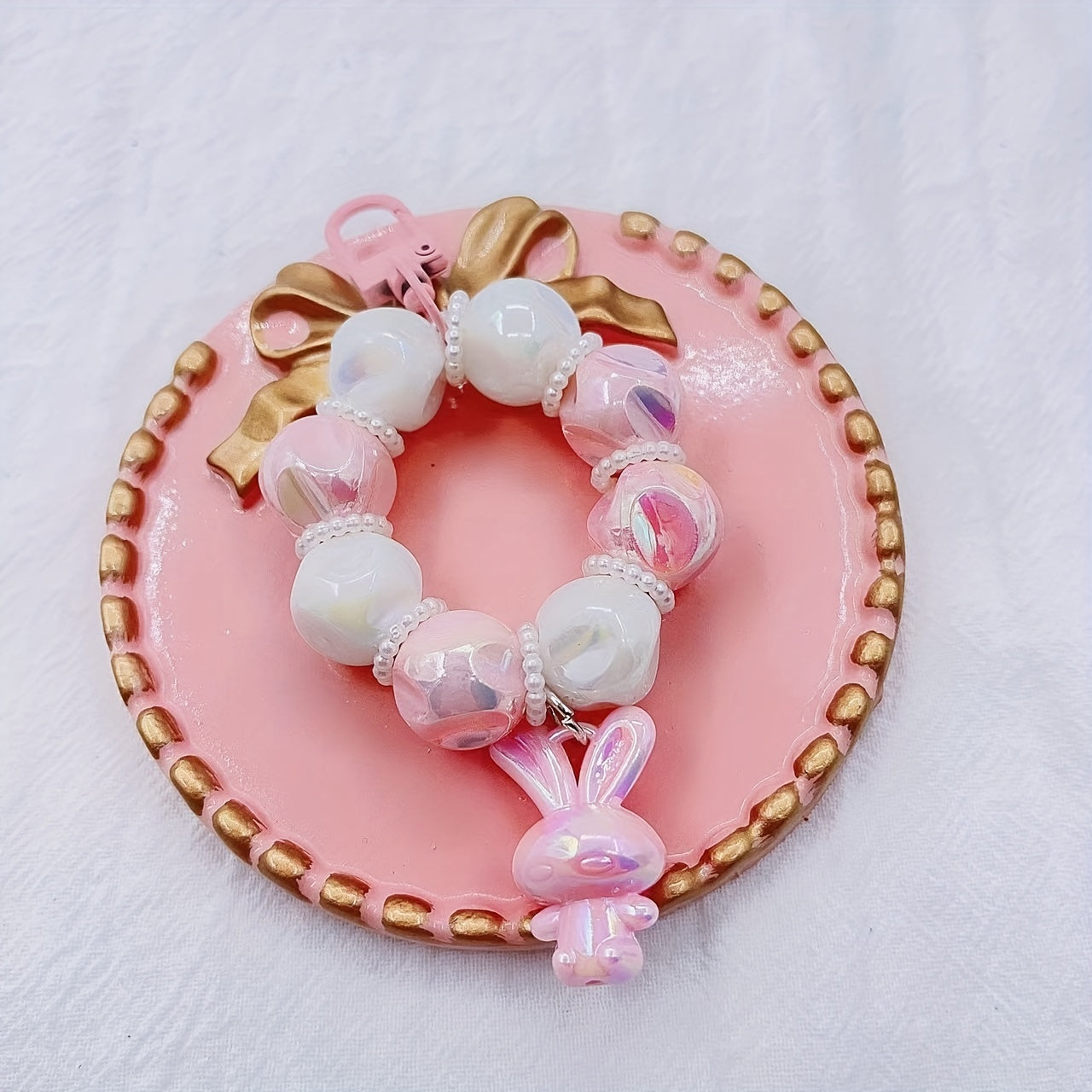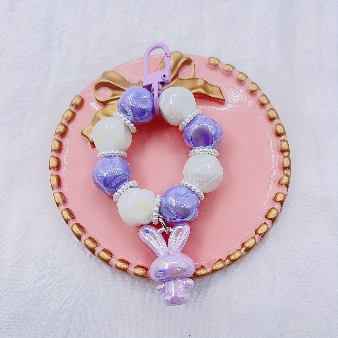 Cute cartoon electroplated resin rabbit keychain pendant perfect for decorating bags and backpacks.