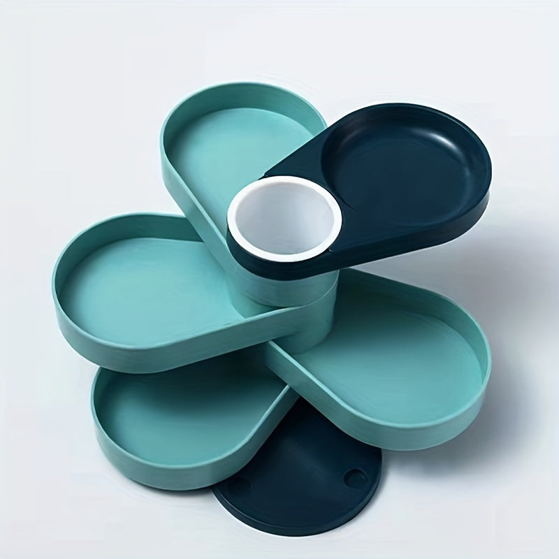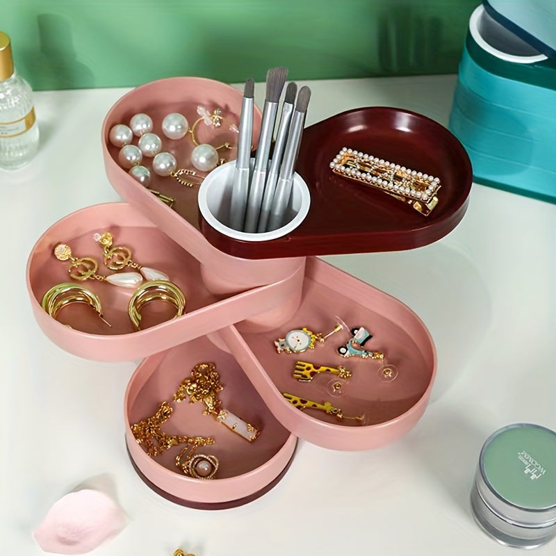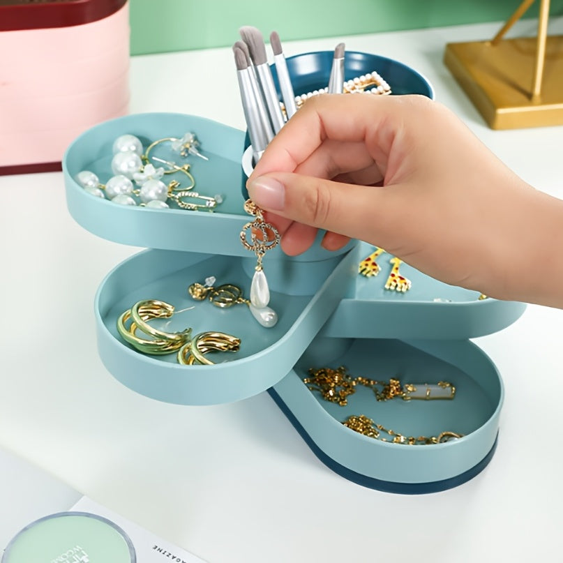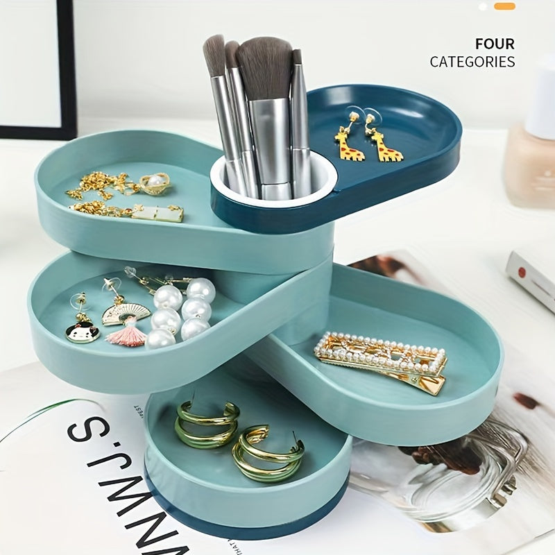 Keep your jewelry organized and easily accessible with this rotating jewelry box. It offers ample space for storing earrings, necklaces, rings, and more.