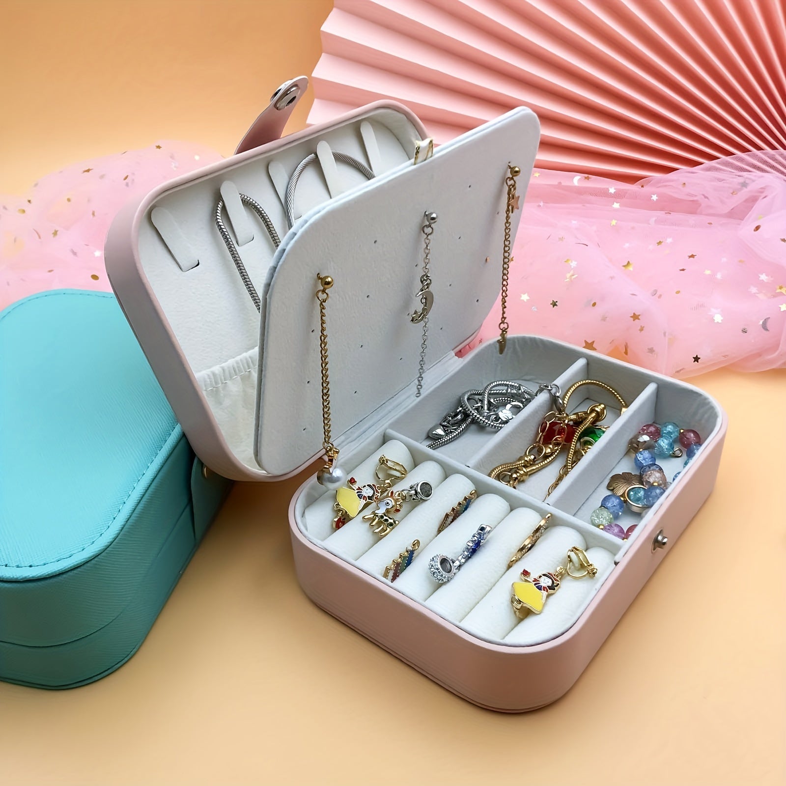 Keep your earrings, rings, necklaces, and bracelets organized in this portable box made of high-quality PU leather.