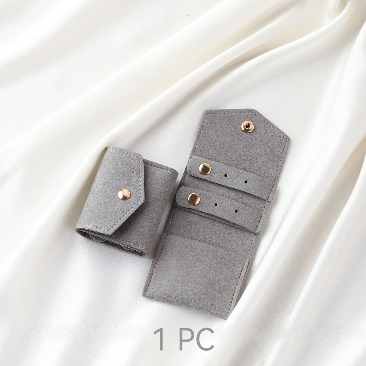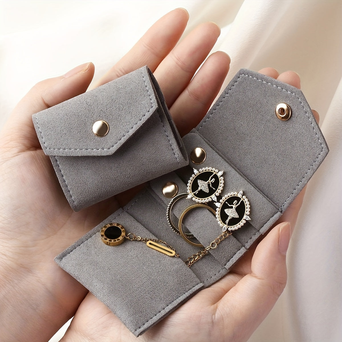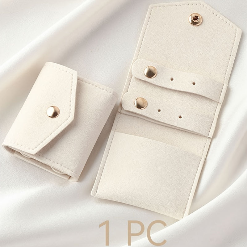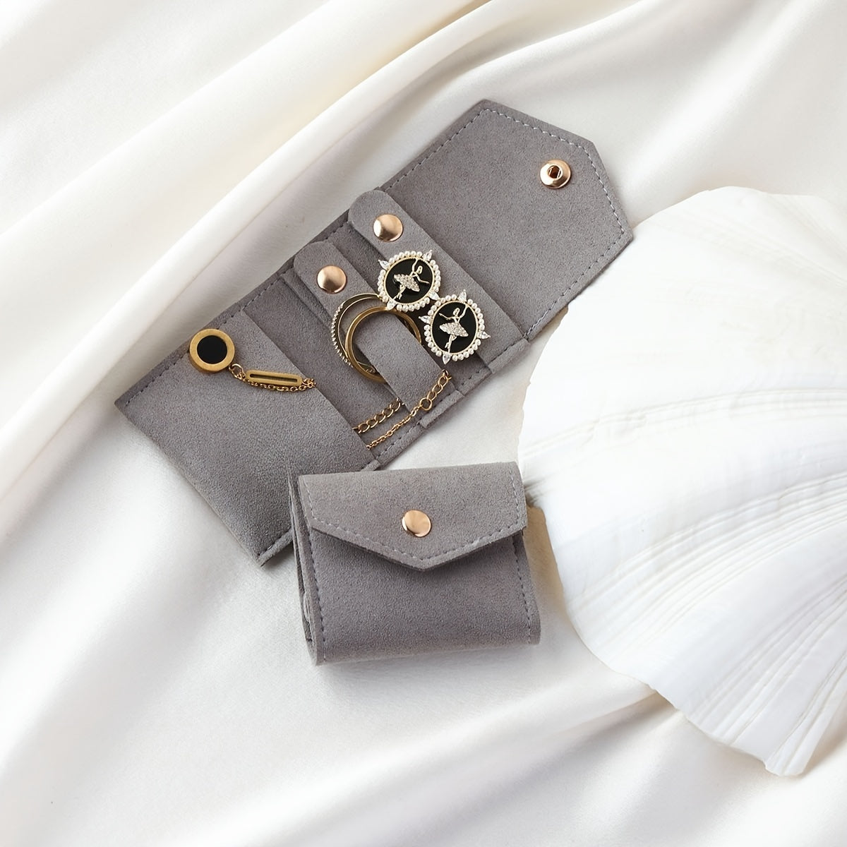 Keep your jewelry organized and safe with this soft portable storage bag featuring compartments for earrings, rings, ear studs, and necklaces.