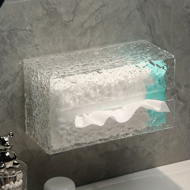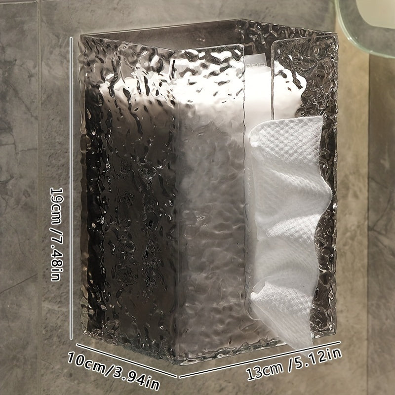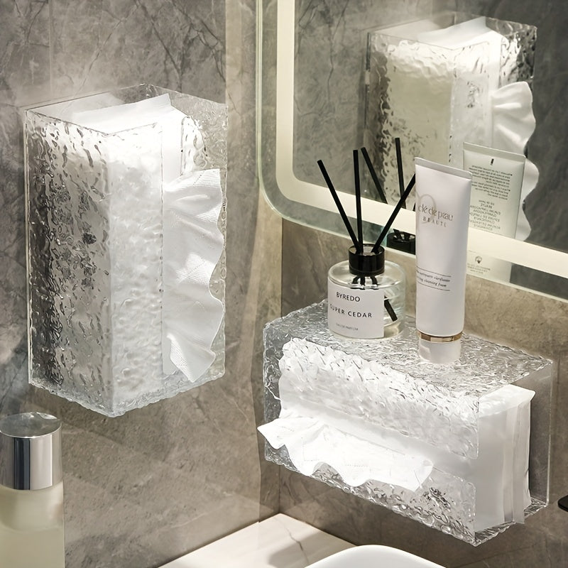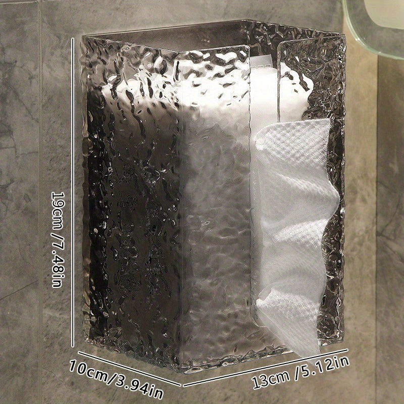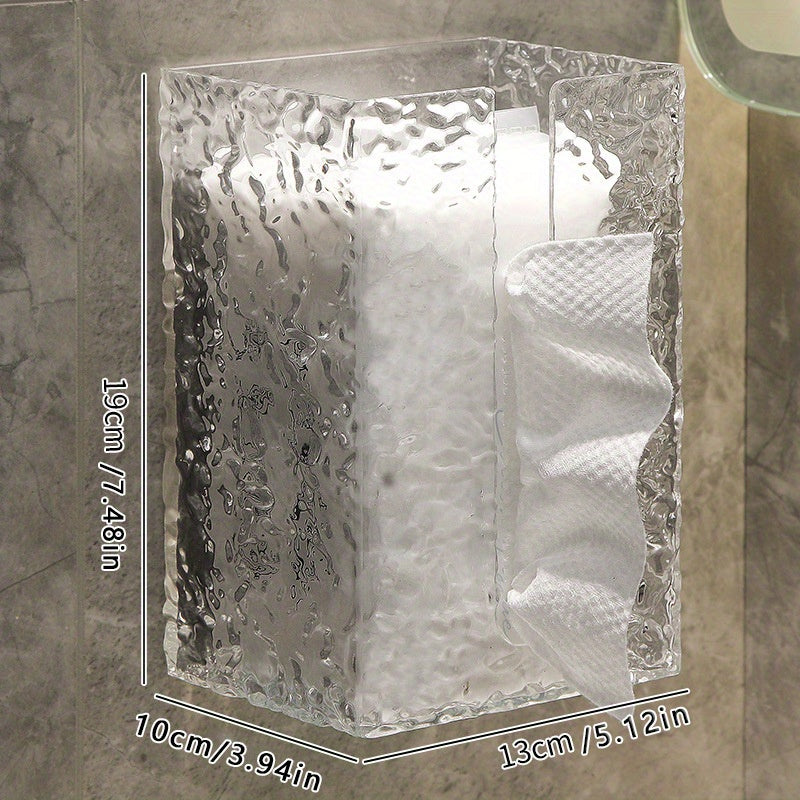 This acrylic tissue box features a water ripple design, perfect for adding a touch of elegance to your bathroom decor. It can be easily mounted on the wall, saving space and providing convenient storage for tissues or towels.