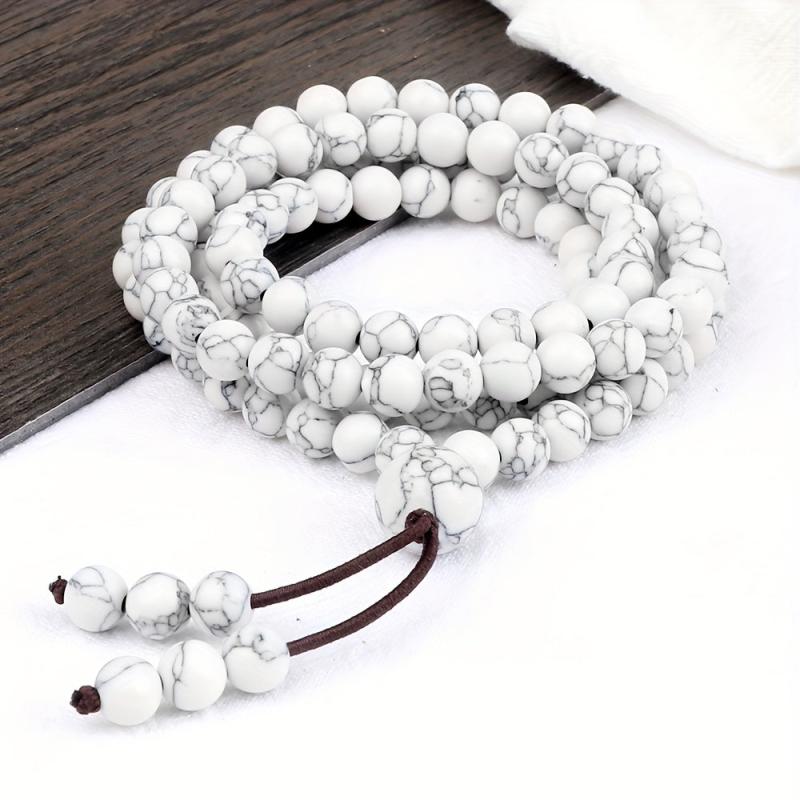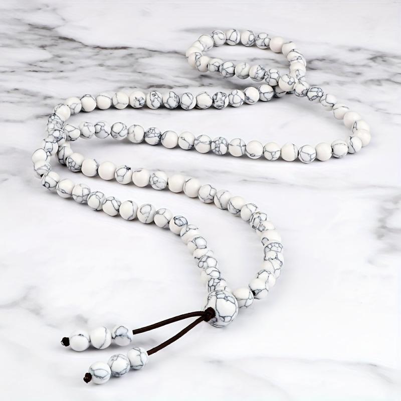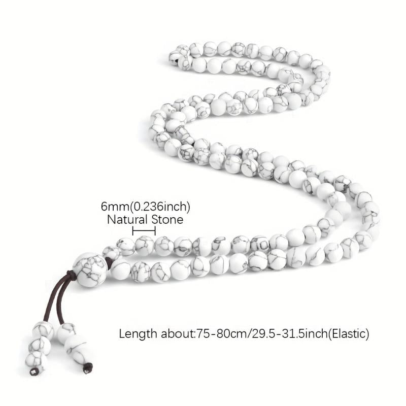Embrace minimalist style with this necklace featuring 108 natural stone beads. Each bead is crafted from natural materials to offer a blessing for peace.