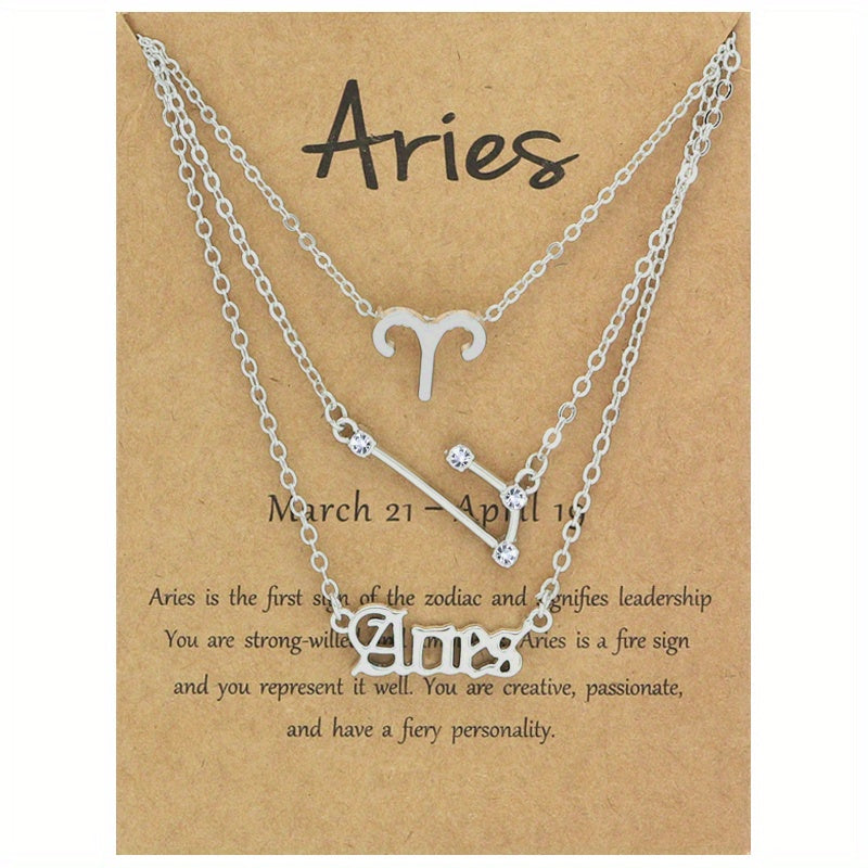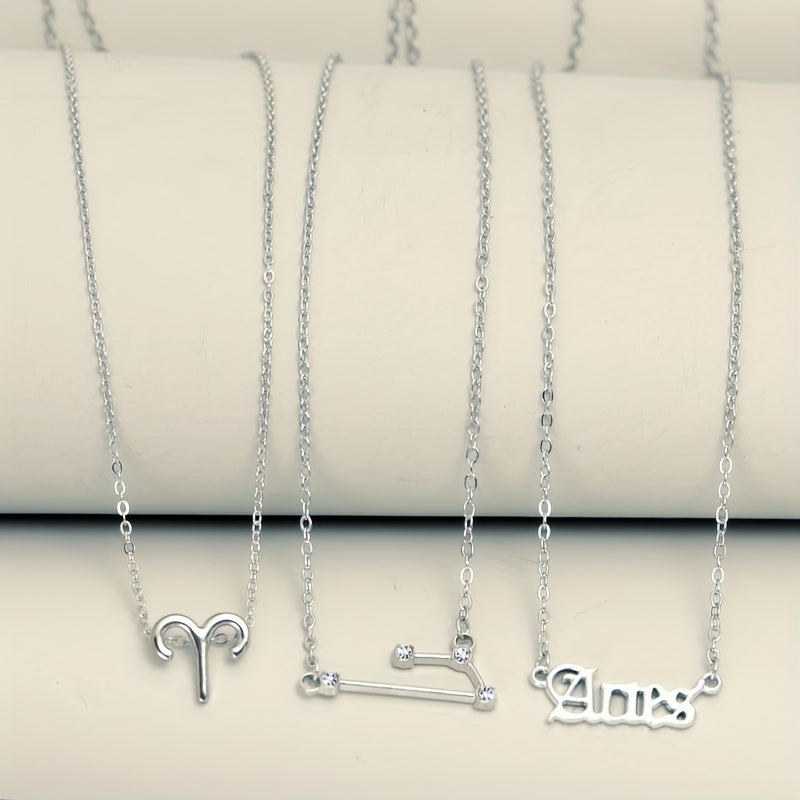 This three-piece necklace set includes vintage letter and star position pendants with constellation symbols. Each necklace comes with a constellation card.