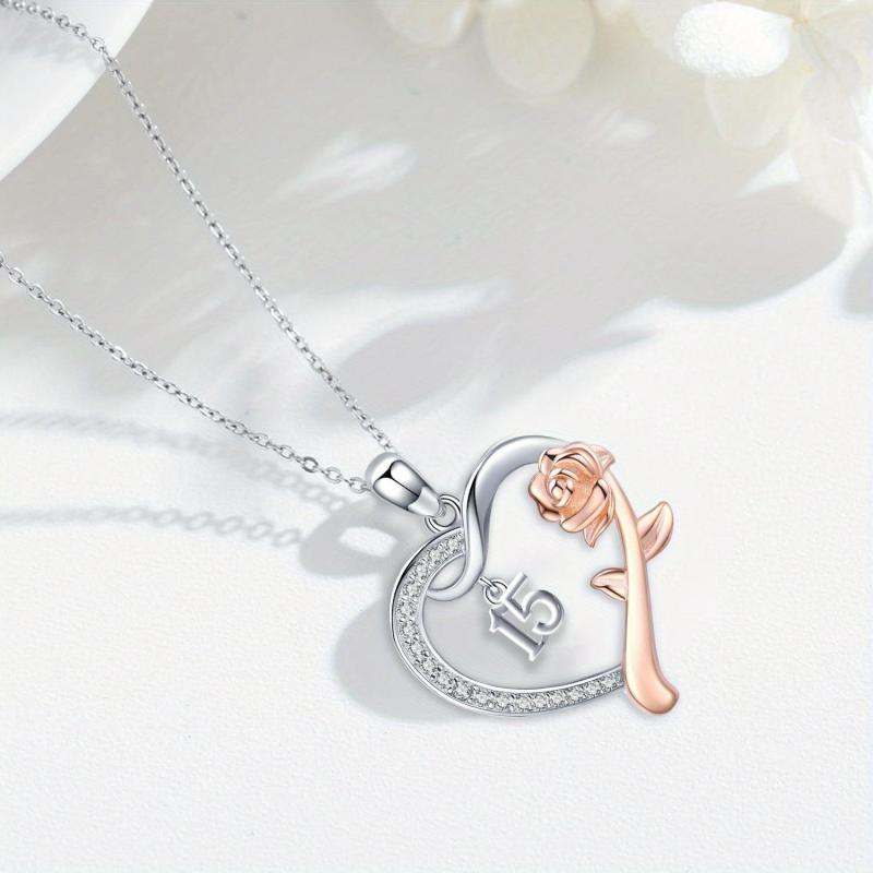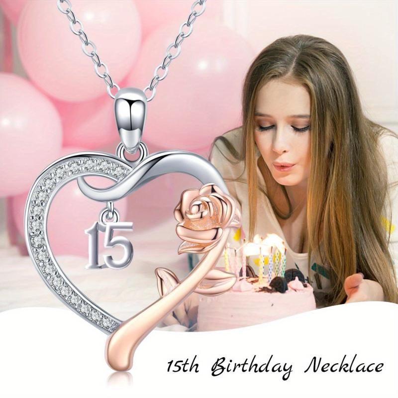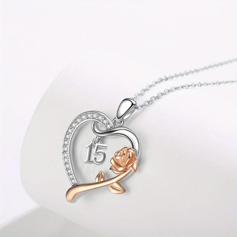 Celebrate your 15th birthday with this stunning necklace featuring a roseflower heart pendant in 925 sterling silver. Perfect for any teenage girl!