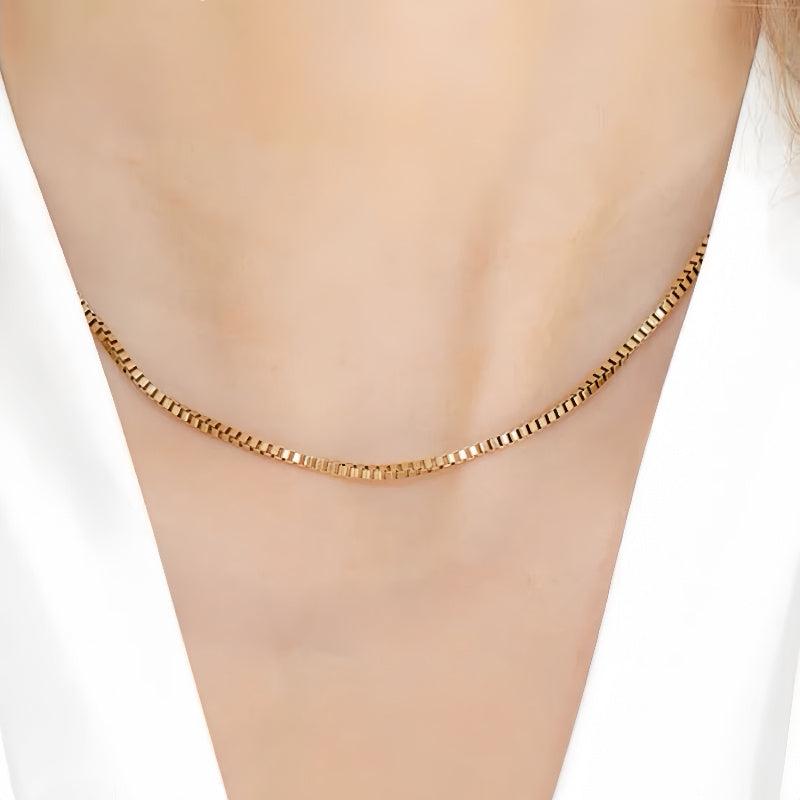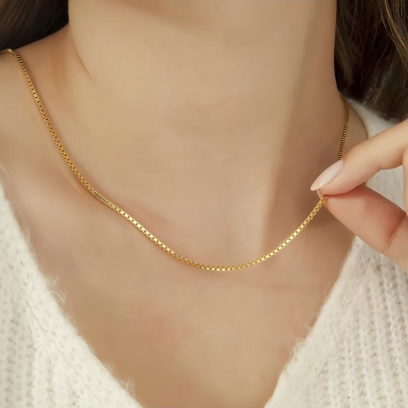 Elegant square necklace that is perfect for gifting or wearing everyday. Made with 18K gold plating to resist tarnishing.