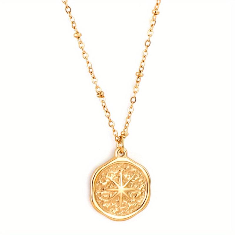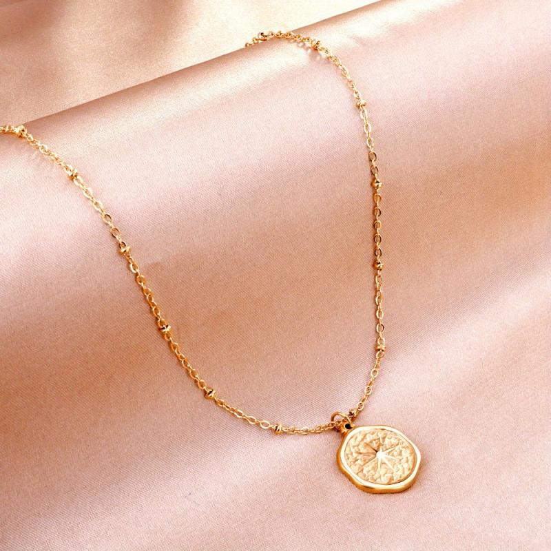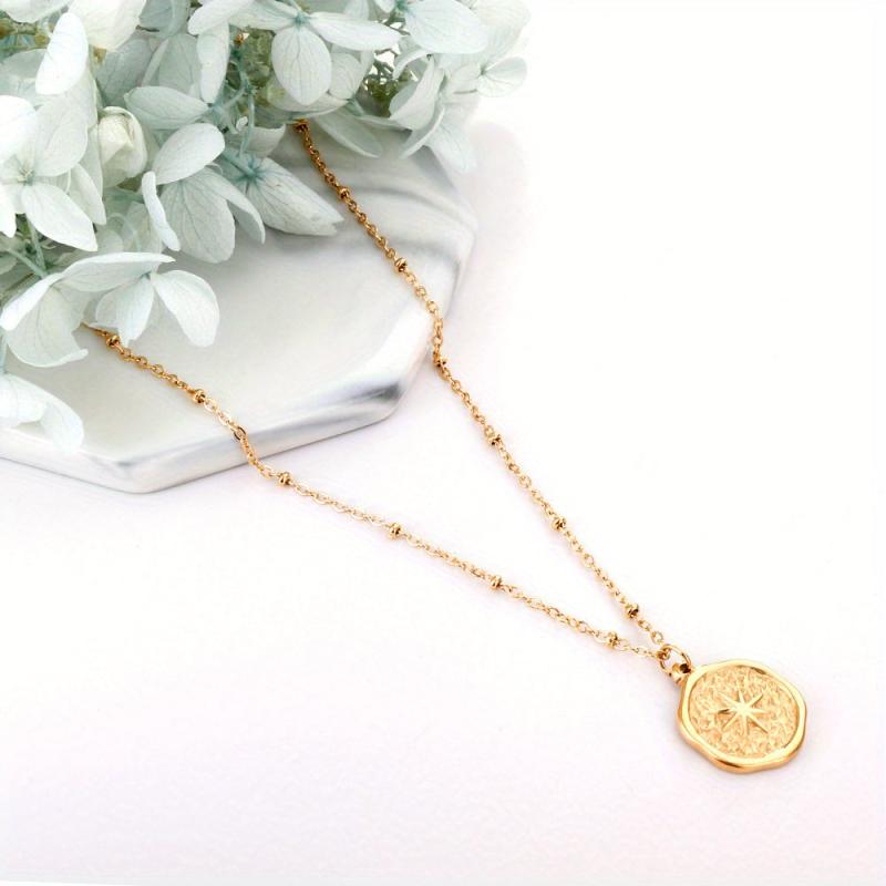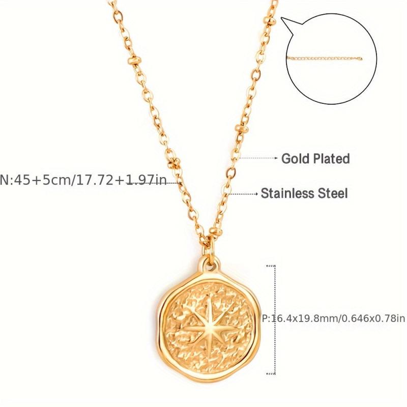 Elegant round pendant necklace with 18K gold plating, made of durable 316L stainless steel. Ideal as a gift for women and suitable for daily wear all year round.