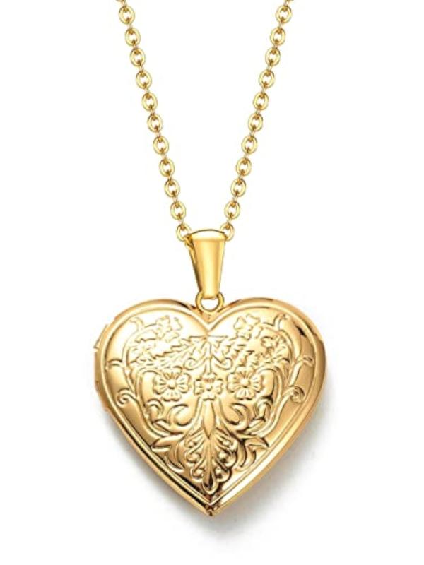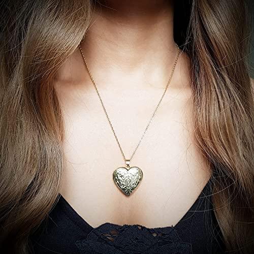 Capture cherished memories with this heart-shaped locket pendant necklace. Made of 18K real plated metal, it features a photo memory locket design. Perfect gift for Valentine's Day or any special occasion.