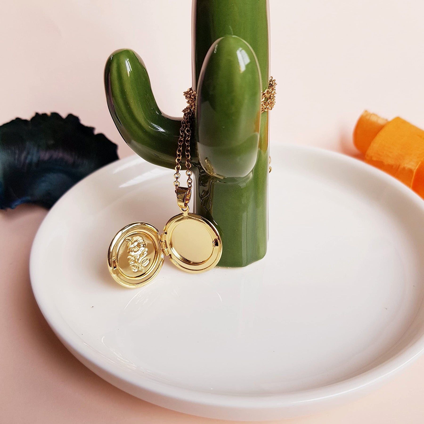 Capture memories with this elegant circular locket pendant necklace. The perfect Valentine's Day gift for her.