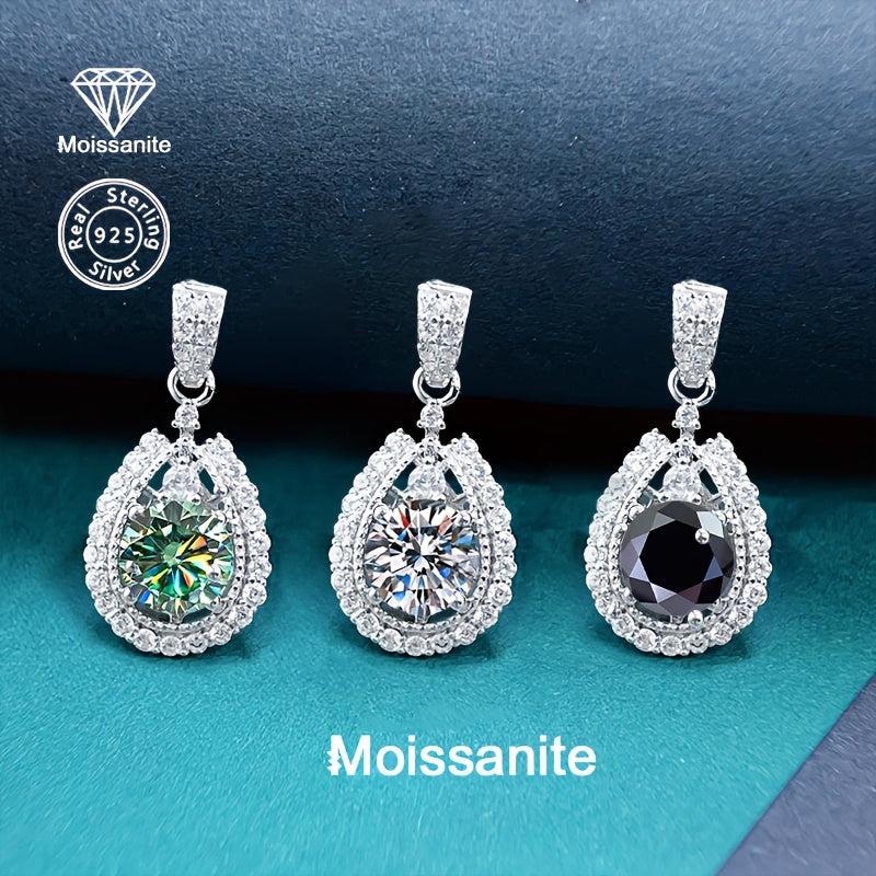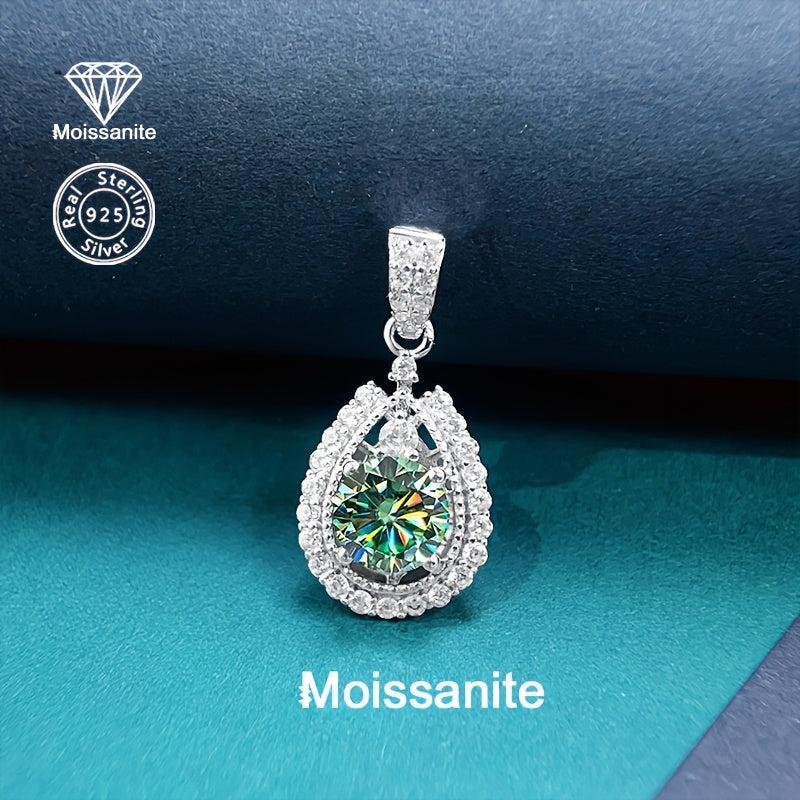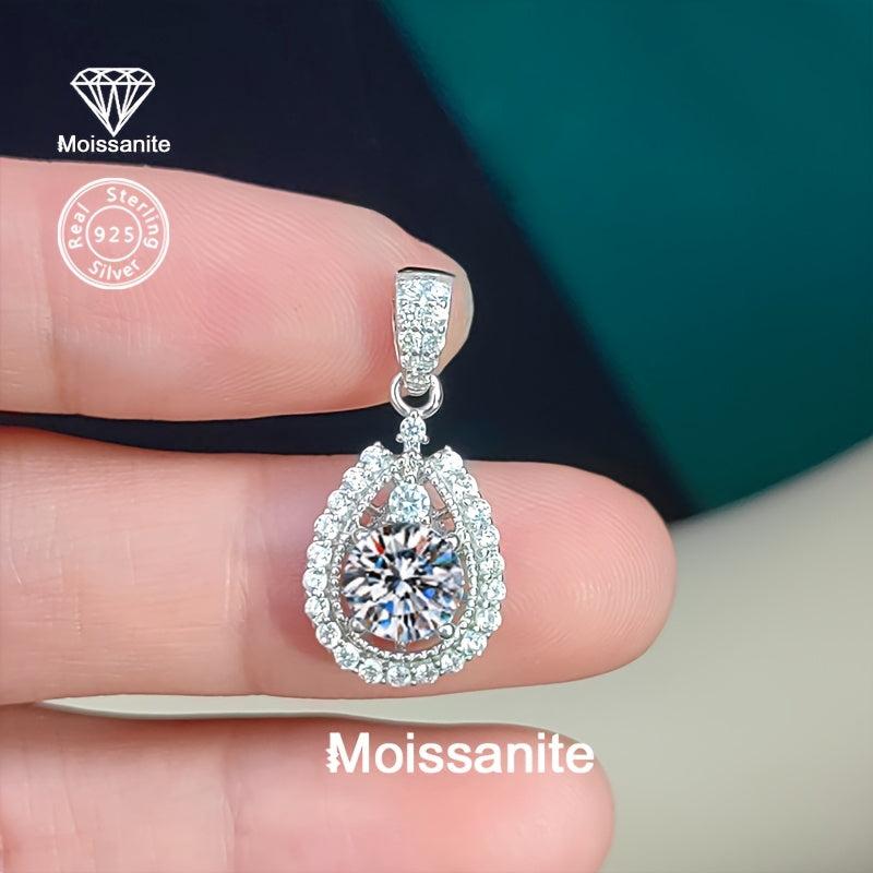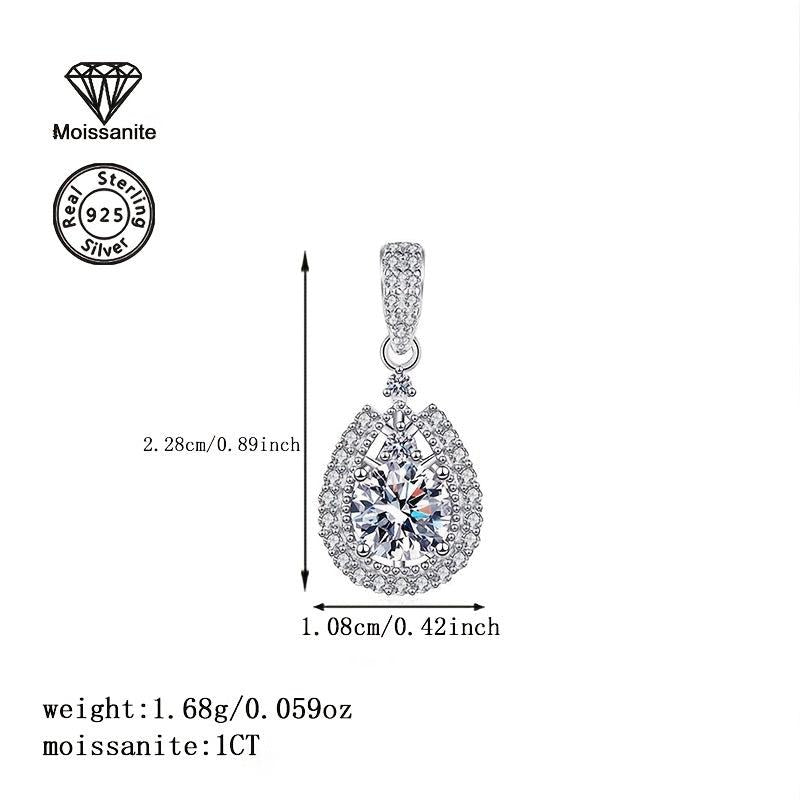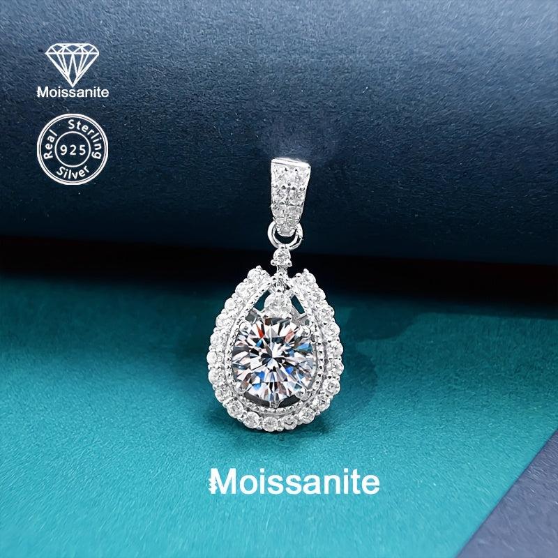 This stunning water drop pendant features a 1ct moissanite stone set in S925 silver, perfect for parties, Halloween, Mother's Day, or Christmas.