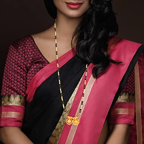 Elegant and stylish Maharashtrian long double chain mangalsutra designed for temple and South Indian traditional looks. Made with 1 gram of high-quality material.