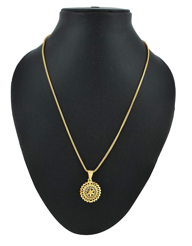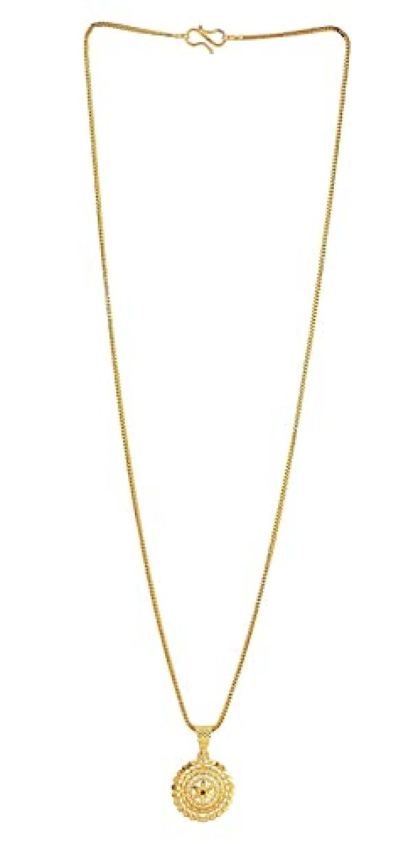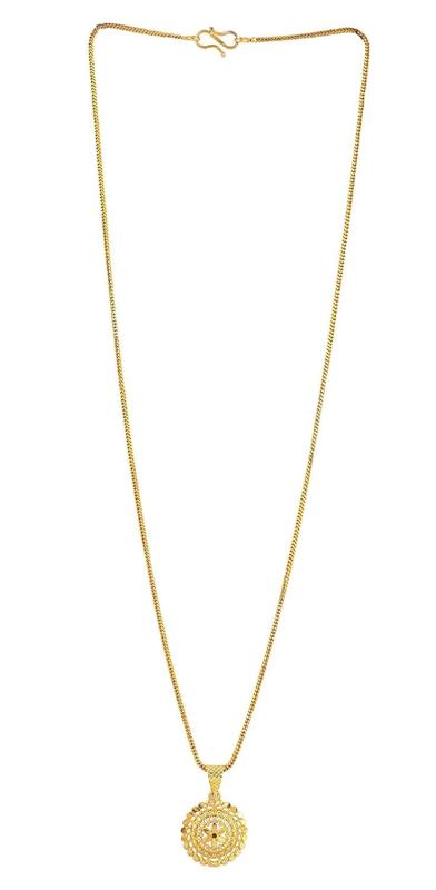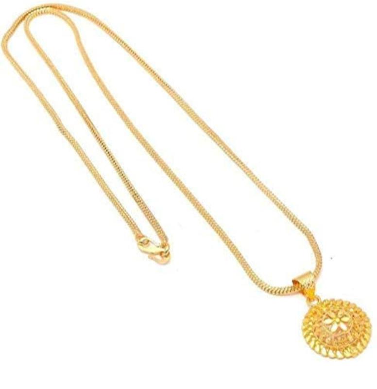Elevate your style with this latest 22Ct plated chain featuring a stylish pendant. This celebrity-inspired jewelry set is a must-have fashion accessory.