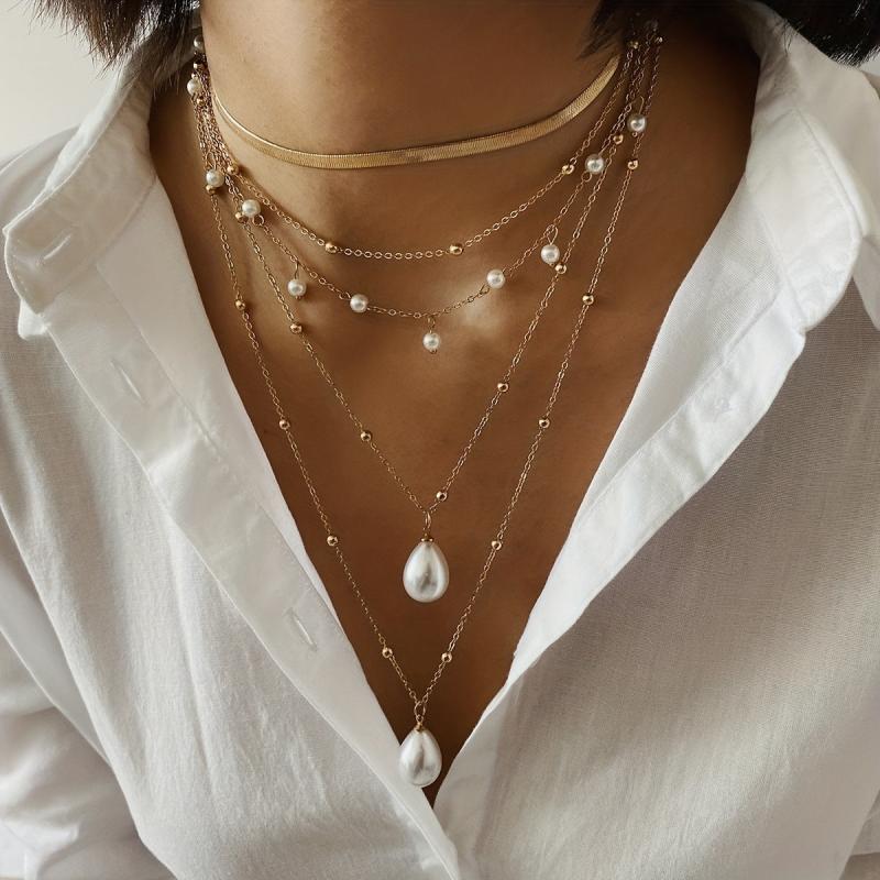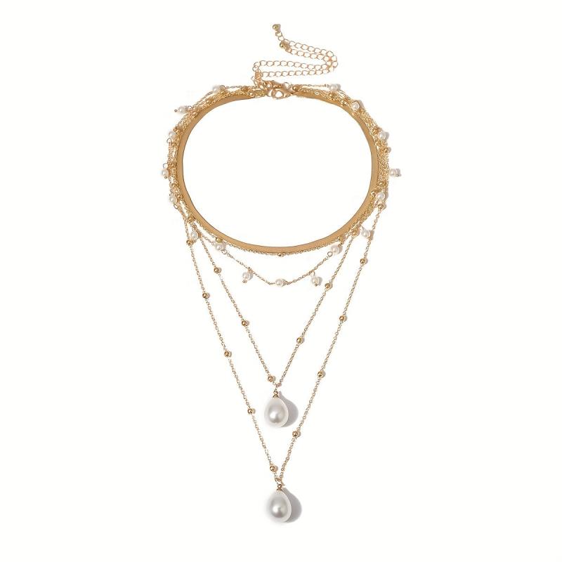 Elevate your look with this stylish 2-piece necklace set featuring layered tassel design. The set includes one faux copper bead necklace and one flat snake chain necklace.