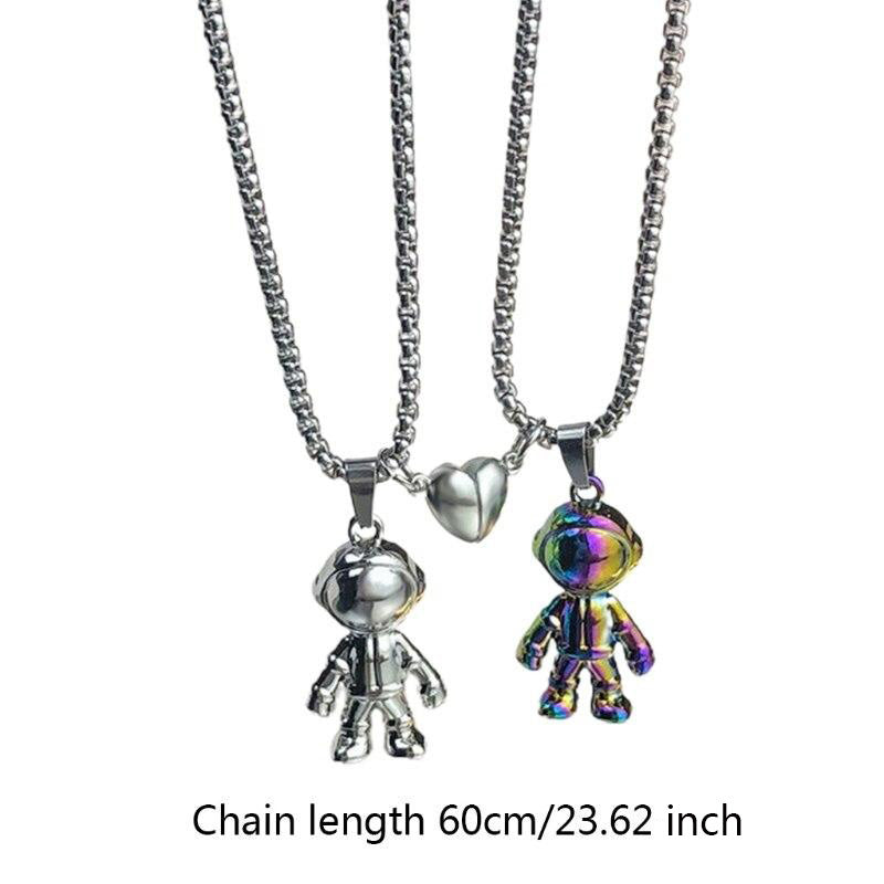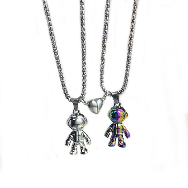 Keep your loved one close with this set of spaceman necklaces featuring mutual attraction. A unique and stylish way to show your bond.